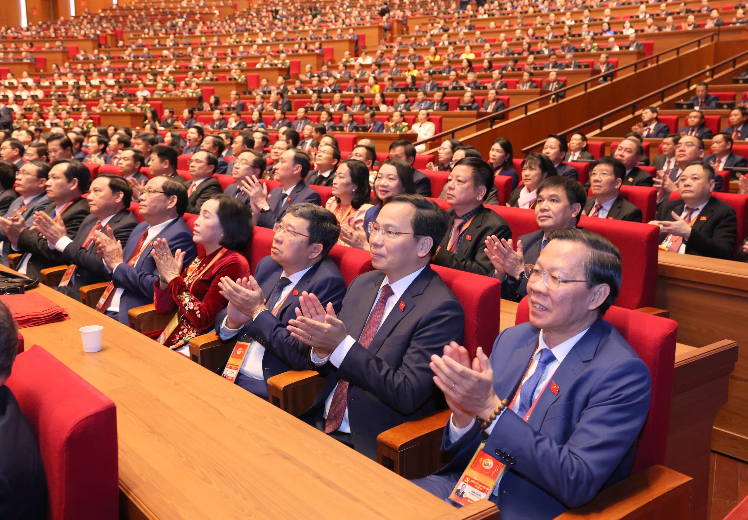 Thay mặt Đoàn Chủ tịch, Chủ tịch Quốc hội Trần Thanh Mẫn đã báo cáo Đại hội kết quả Hội nghị lần thứ nhất Ban Chấp hành Trung ương Đảng khóa XIV bầu Bộ Chính trị, Tổng Bí thư, Ban Bí thư, Ủy ban Kiểm tra Trung ương và Chủ nhiệm Ủy ban Kiểm tra Trung ương khóa XIV.