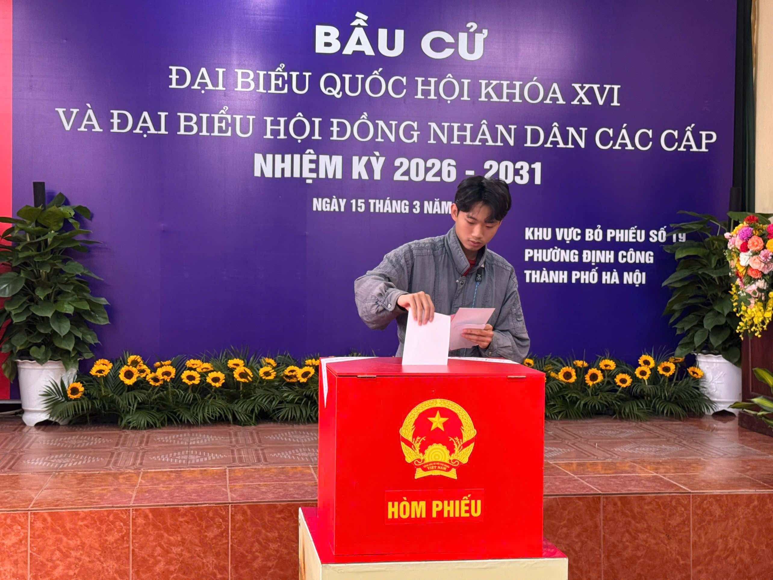 Cử tri phường Định Công tham gia bỏ phiếu