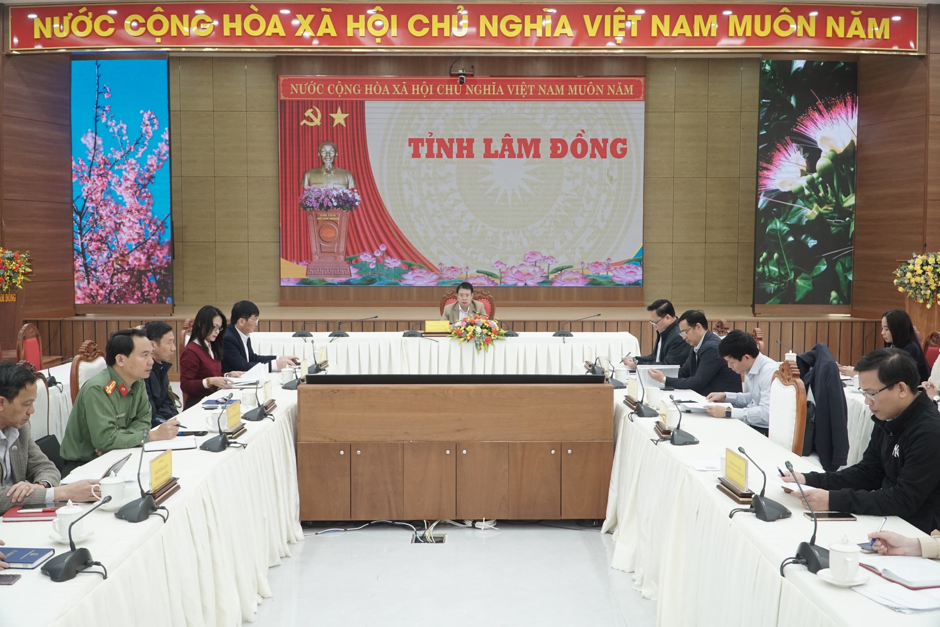 Tại điểm cầu Lâm Đồng, Tỉnh ủy viên, Phó Chủ tịch UBND tỉnh Lâm Đồng Nguyễn Ngọc Phúc chủ trì Hội nghị. Dự Hội nghị có lãnh đạo các sở, ban, ngành, của tỉnh.