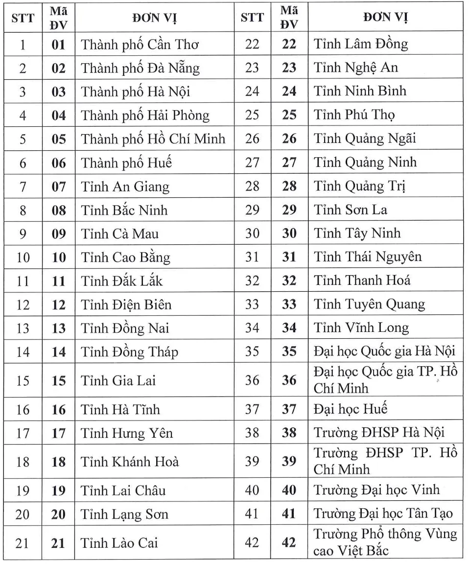 Sau sáp nhập, cả nước có 42 đơn vị dự thi, gồm 34 tỉnh, thành và các đại học Quốc gia Hà Nội, Quốc gia TP.HCM, Huế, Sư phạm Hà Nội, Sư phạm TP.HCM, Vinh, Tân Tạo và trường Phổ thông Vùng cao Việt Bắc.