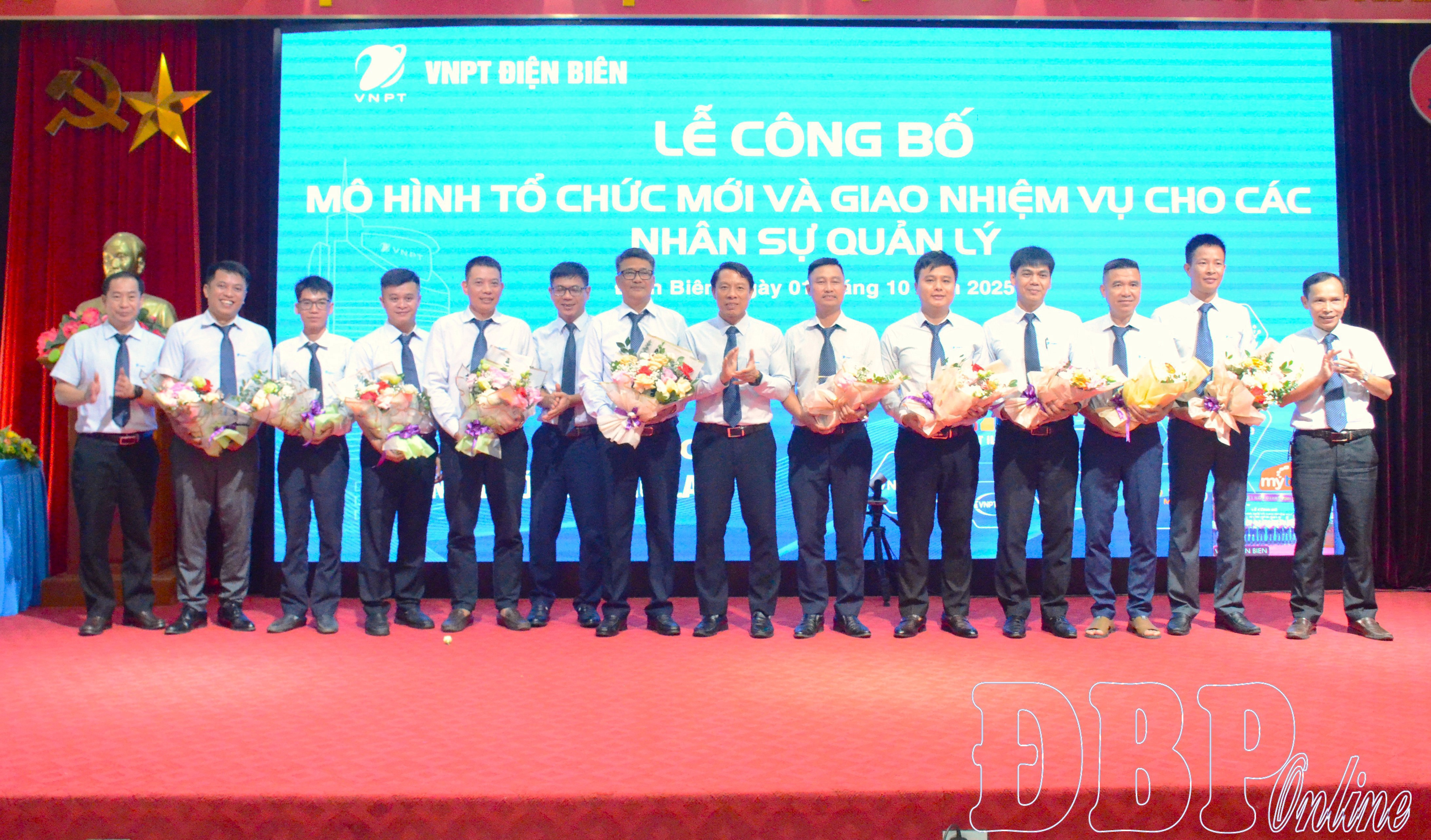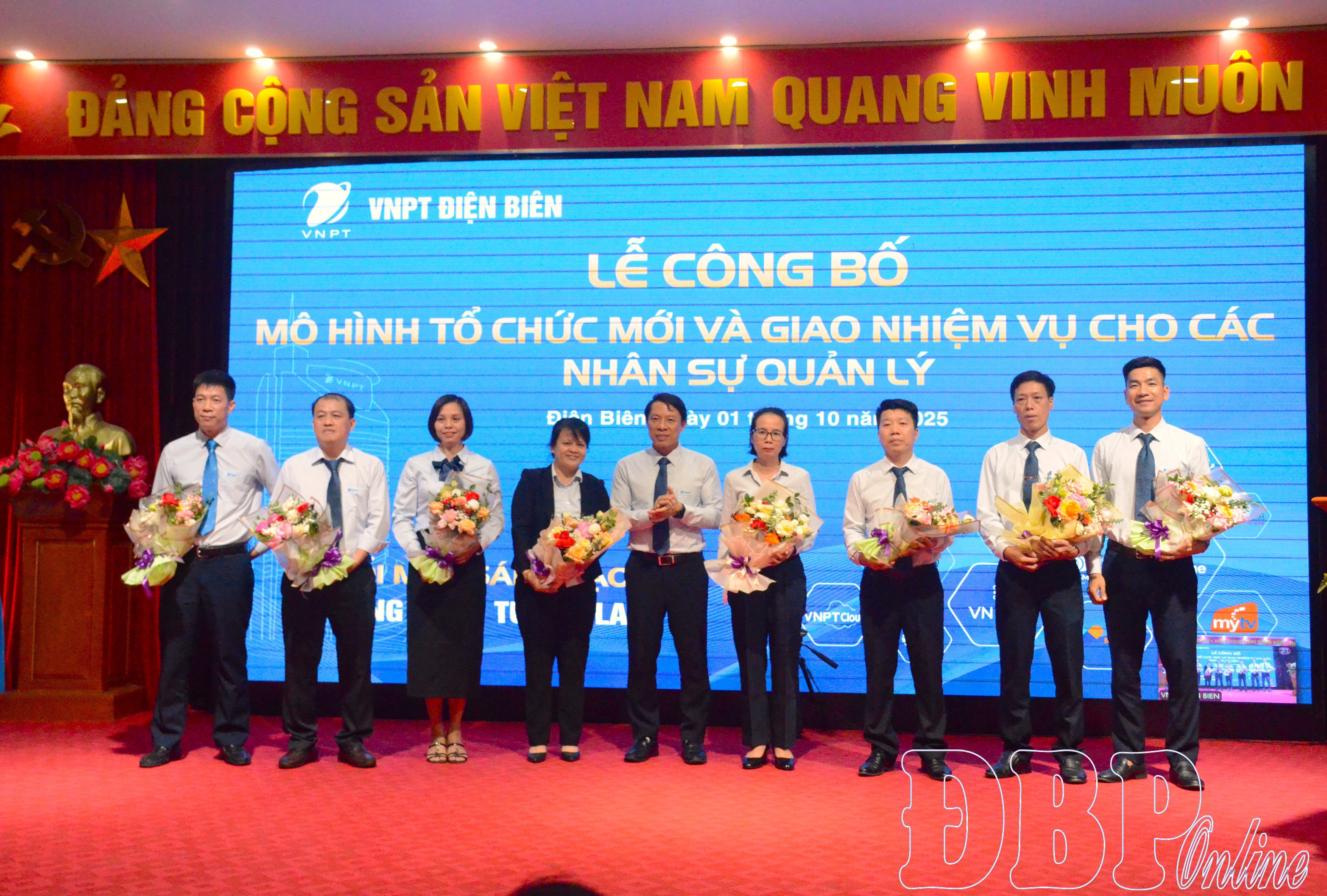 Ban Giám đốc Viễn thông Điện Biên tặng hoa chúc mừng cán bộ chủ chốt các trung tâm.