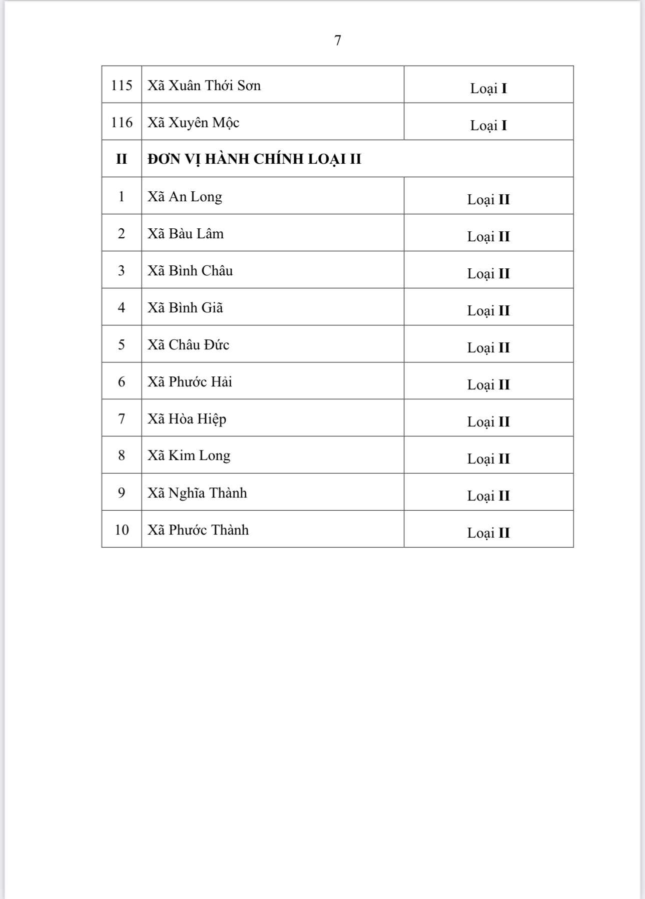Theo đó, đơn vị hành chính loại I có 116 ĐVHC, gồm 88 phường và 28 xã. Đơn vị hành chính loại II có 10 ĐVHC gồm 10 xã.
