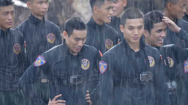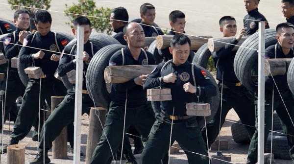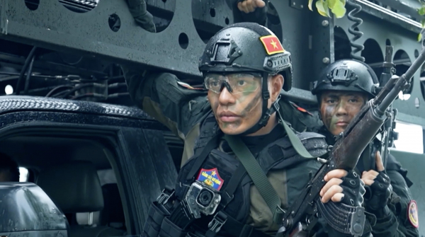 Một trong những hình ảnh khó quên của các chiến sĩ nhập vai trong "Chiến sĩ quả cảm".