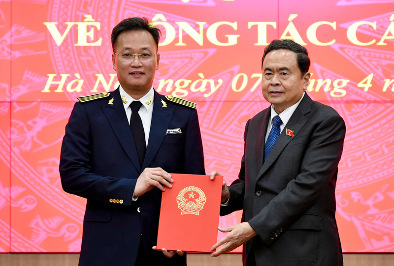 Chủ tịch Quốc hội Trần Thanh Mẫn, Phó Chủ tịch Quốc hội Nguyễn Hồng Diên, Phó Chủ tịch Quốc hội Nguyễn Thị Hồng dự Lễ công bố Nghị quyết của Quốc hội về bầu Tổng Kiểm toán nhà nước nhiệm kỳ 2026 - 2031 với ông Nguyễn Hữu Nghĩa. Ảnh: Minh Thư