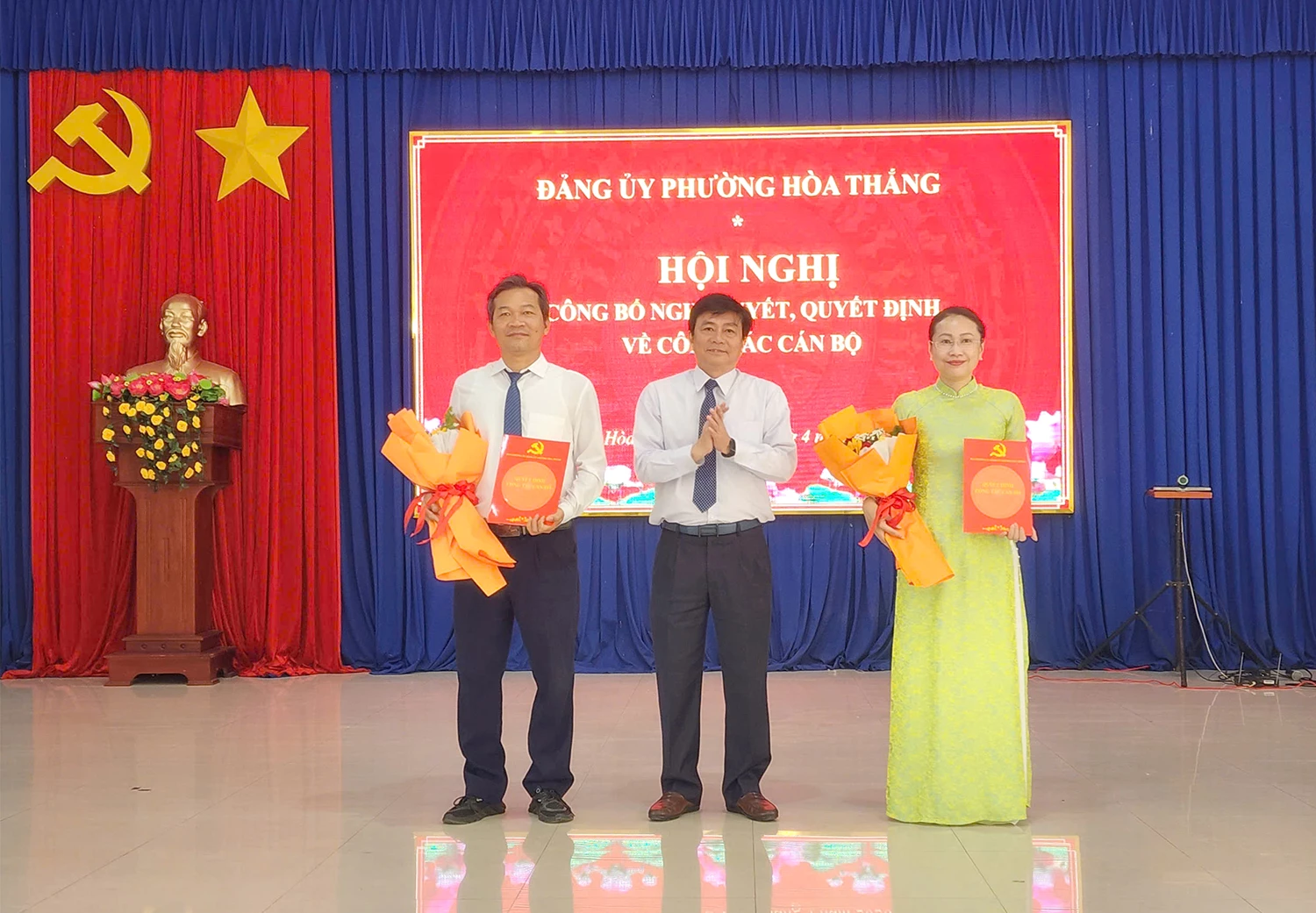 Hội nghị cũng công bố Quyết định của UBND tỉnh phê chuẩn bà Phan Hải Thoại - Phó Bí thư Đảng ủy, Chủ tịch UBND phường Hòa Thắng nhiệm kỳ 2021 - 2026 giữ chức vụ Chủ tịch UBND phường Hòa Thắng nhiệm kỳ 2026 - 2031; ông Trịnh Xuân Thanh - Ủy viên Ban Thường vụ Đảng ủy, Phó Chủ tịch UBND phường nhiệm kỳ 2021 - 2026 được phê chuẩn giữ chức vụ Phó Chủ tịch UBND phường nhiệm kỳ 2026 - 2031.