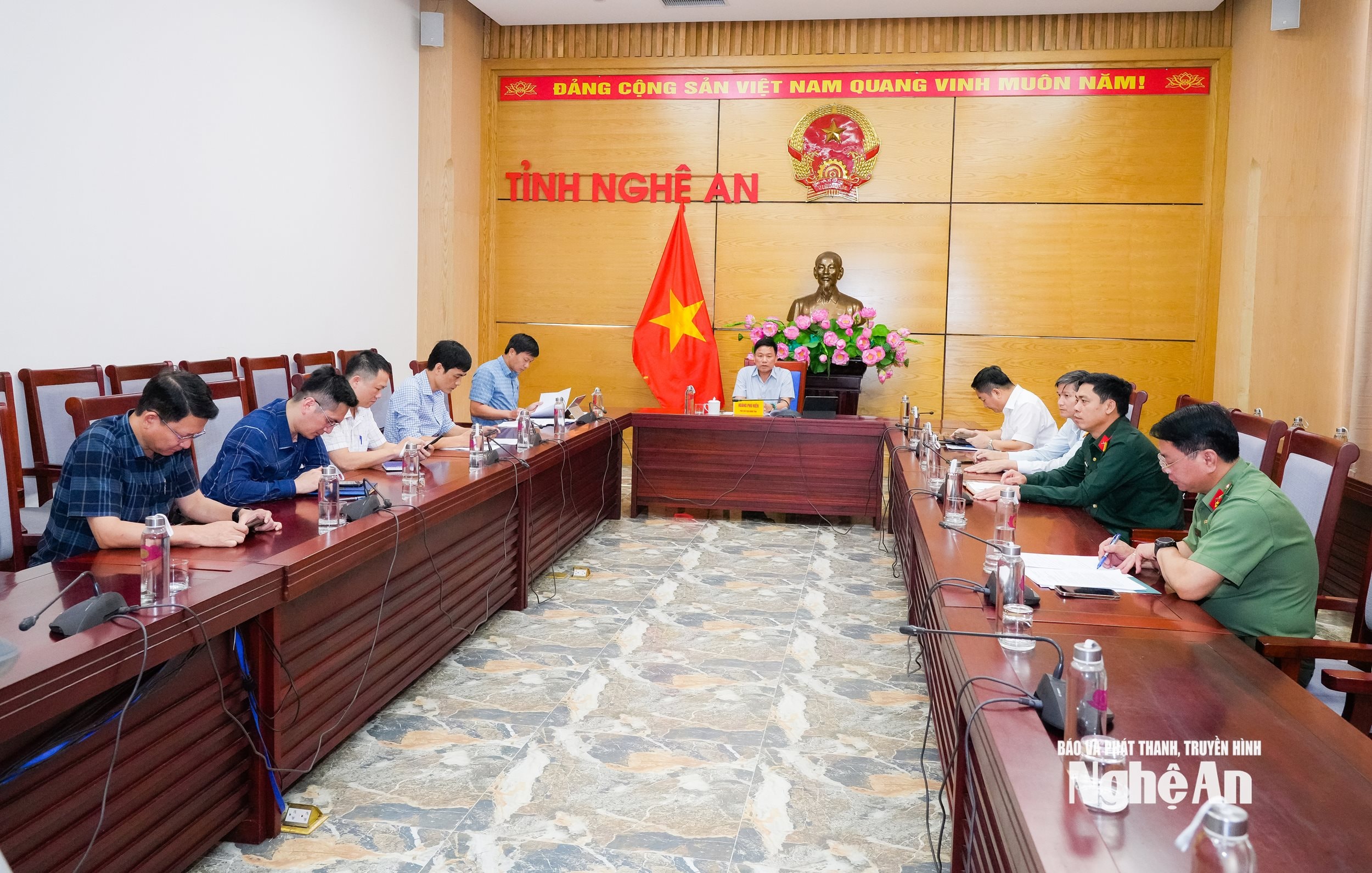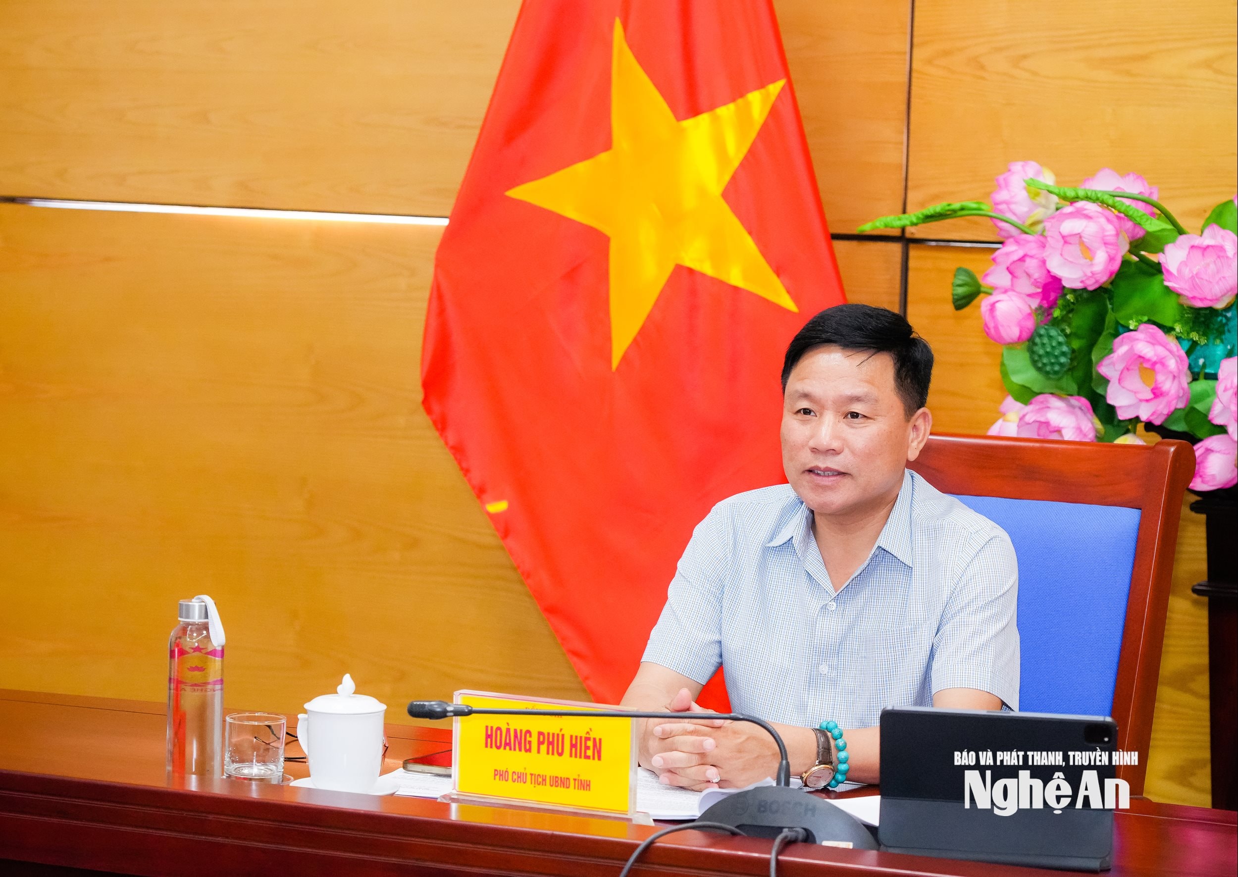 Tại điểm cầu Nghệ An, đồng chí Hoàng Phú Hiền – Ủy viên Ban Chấp hành Đảng bộ tỉnh, Phó Chủ tịch UBND tỉnh chủ trì hội nghị. Ảnh: T.L