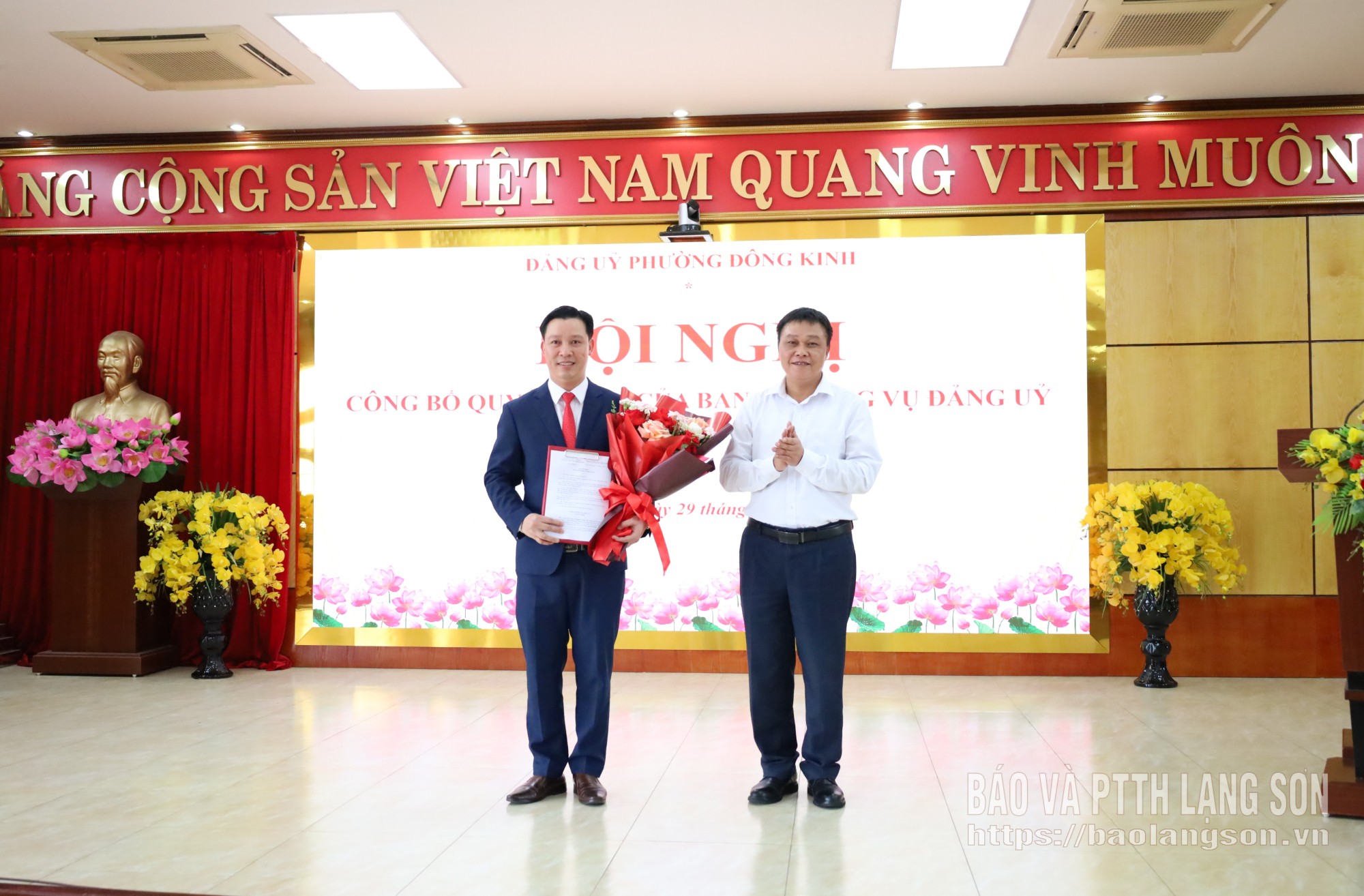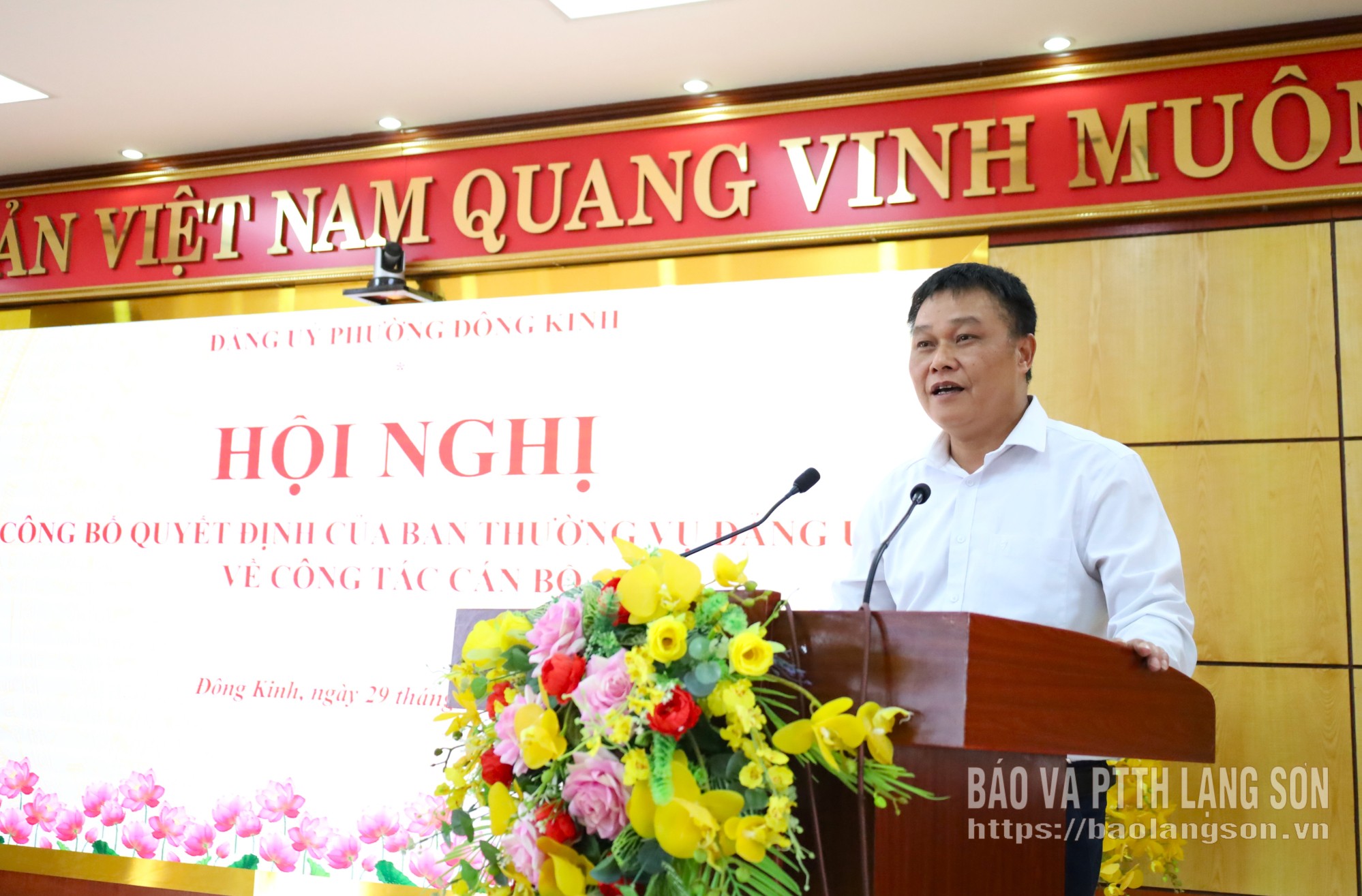 Tại hội nghị, đồng chí Trưởng Ban Xây dựng Đảng phường Đông Kinh đã công bố Quyết định số 369-QĐ/ĐU ngày 28/4/2026 của Ban Thường vụ Đảng ủy phường về việc điều động đồng chí Nguyễn Thành Duy, Phó Giám đốc phụ trách Trung tâm Phục vụ hành chính công phường Đông Kinh đến nhận công tác tại Đảng ủy phường Đông Kinh, bổ nhiệm chức vụ Chánh Văn phòng Đảng ủy phường Đông Kinh. Thời hạn bổ nhiệm là 5 năm, kể từ ngày 1/5/2026.