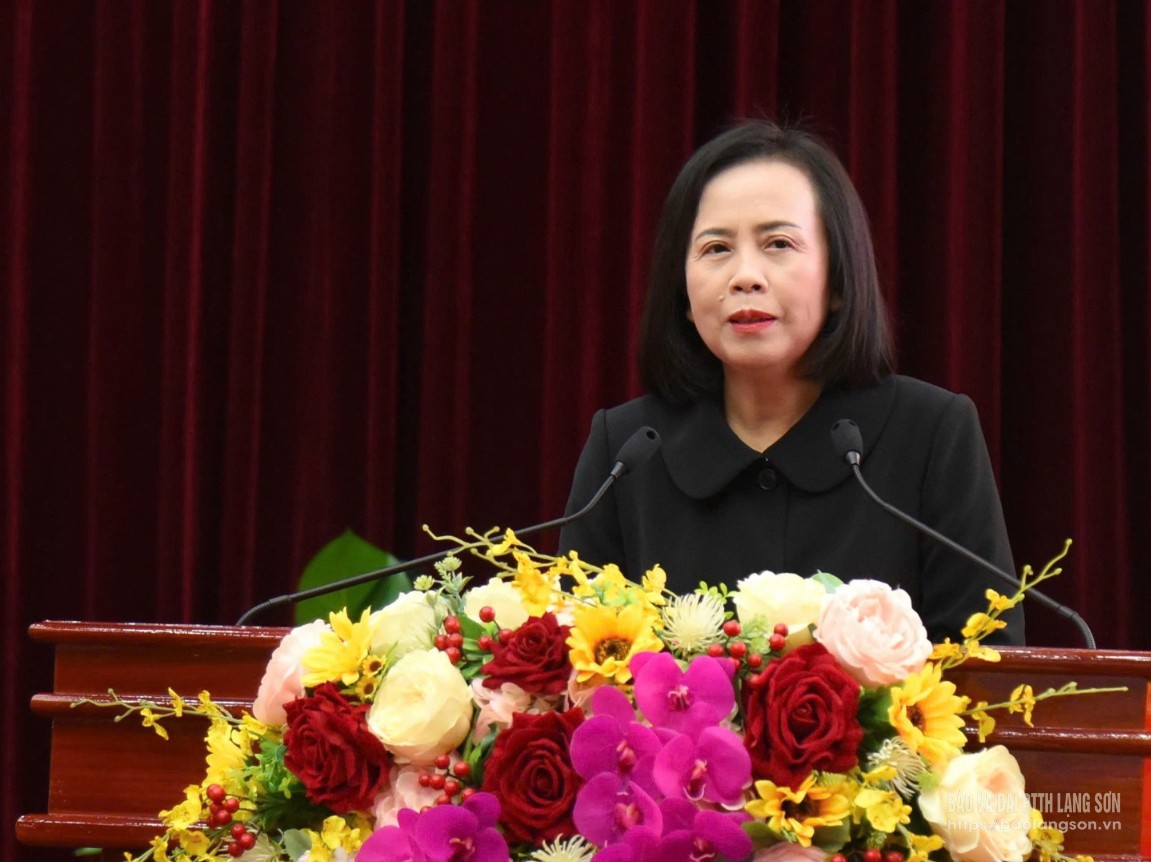 Đồng chí Đoàn Thị Hậu, Phó Bí thư Thường trực Tỉnh ủy, Chủ tịch HĐND tỉnh phát biểu tại hội nghị