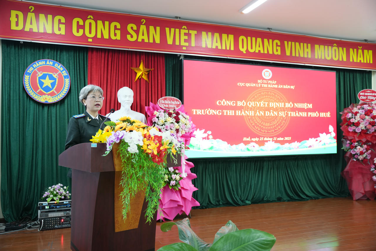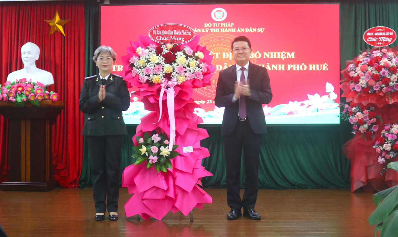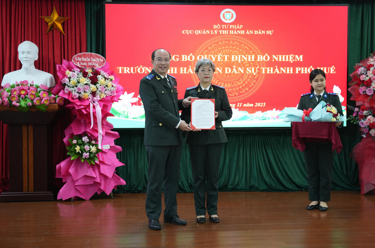 Theo quyết định công bố, bà Phan Thùy Dương, Phó Giám đốc Sở Tư pháp thành phố Huế (hiện đang biệt phái thực hiện nhiệm vụ Quyền Trưởng Thi hành án dân sự thành phố Huế) được tiếp nhận đến công tác tại Thi hành án dân sự TP Huế, kể từ ngày 20 tháng 11 năm 2025 và bổ nhiệm giữ chức vụ Trưởng Thi hành án dân sự TP Huế.