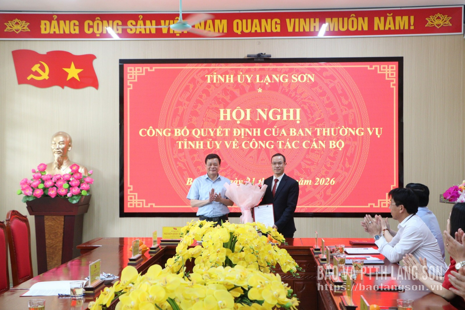 Tại hội nghị, đại diện Ban Tổ chức Tỉnh ủy đã công bố Quyết định số 399-QĐ/TU ngày 20/4/2026 của Ban Thường vụ Tỉnh ủy về việc điều động, chỉ định đồng chí Nông Hồng Giang, Chánh Văn phòng Ban Tuyên giáo và Dân vận Tỉnh ủy tham gia Ban Chấp hành, Ban Thường vụ Đảng ủy, giữ chức Phó Bí thư Thường trực Đảng ủy xã Ba Sơn nhiệm kỳ 2025 - 2030 từ ngày 22/4/2026.