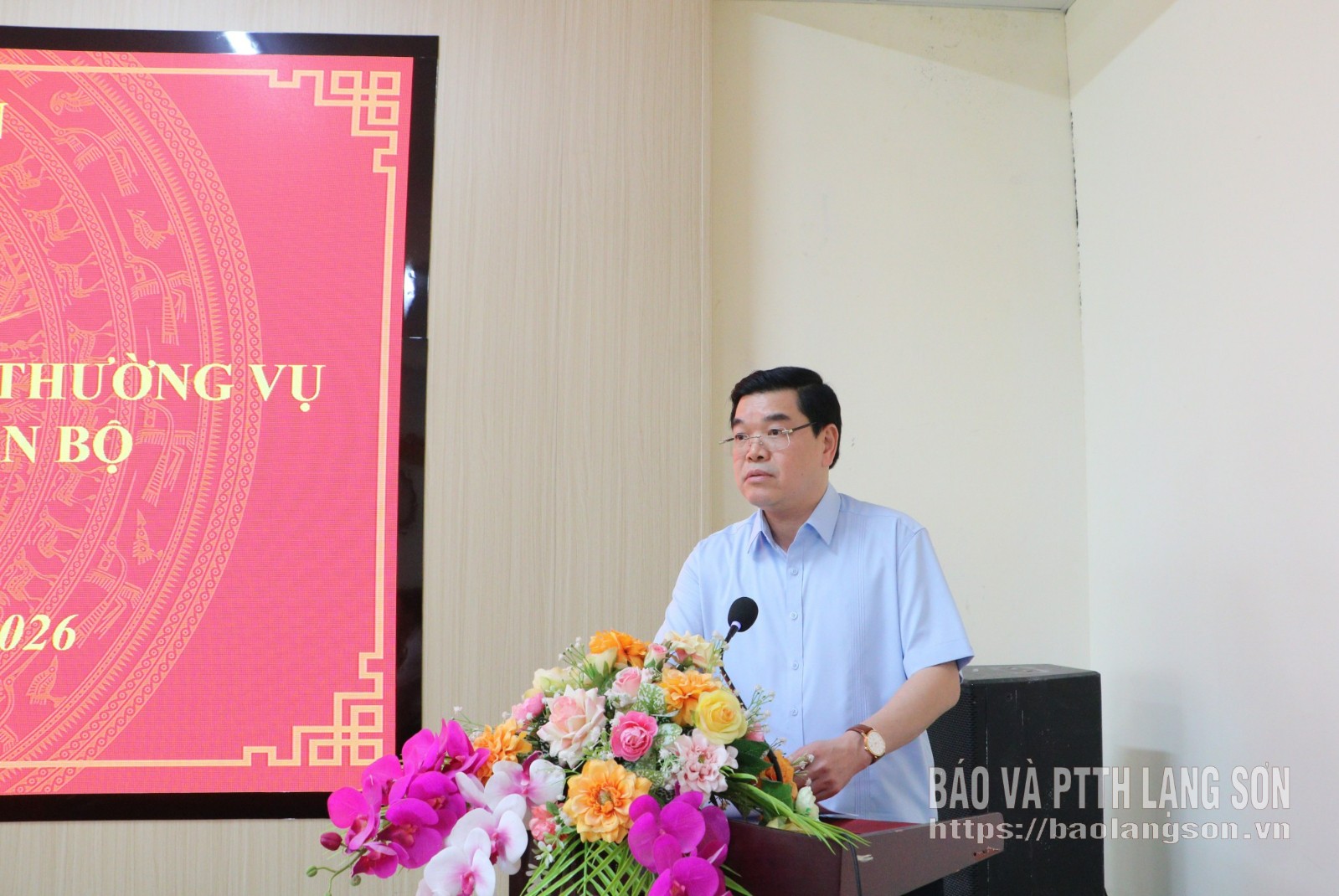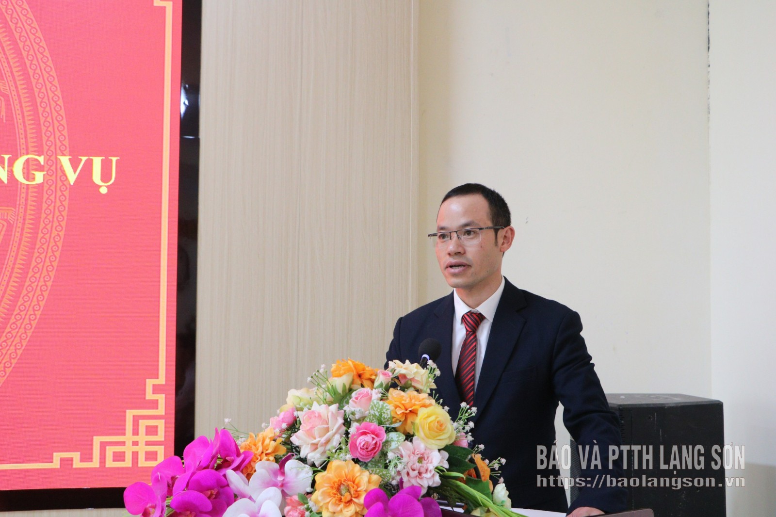Đồng chí Lương Trương Đạt, Tỉnh ủy viên, Phó Trưởng Ban Thường trực Ban Tổ chức Tỉnh ủy phát biểu giao nhiệm vụ cho đồng chí Nông Hồng Giang