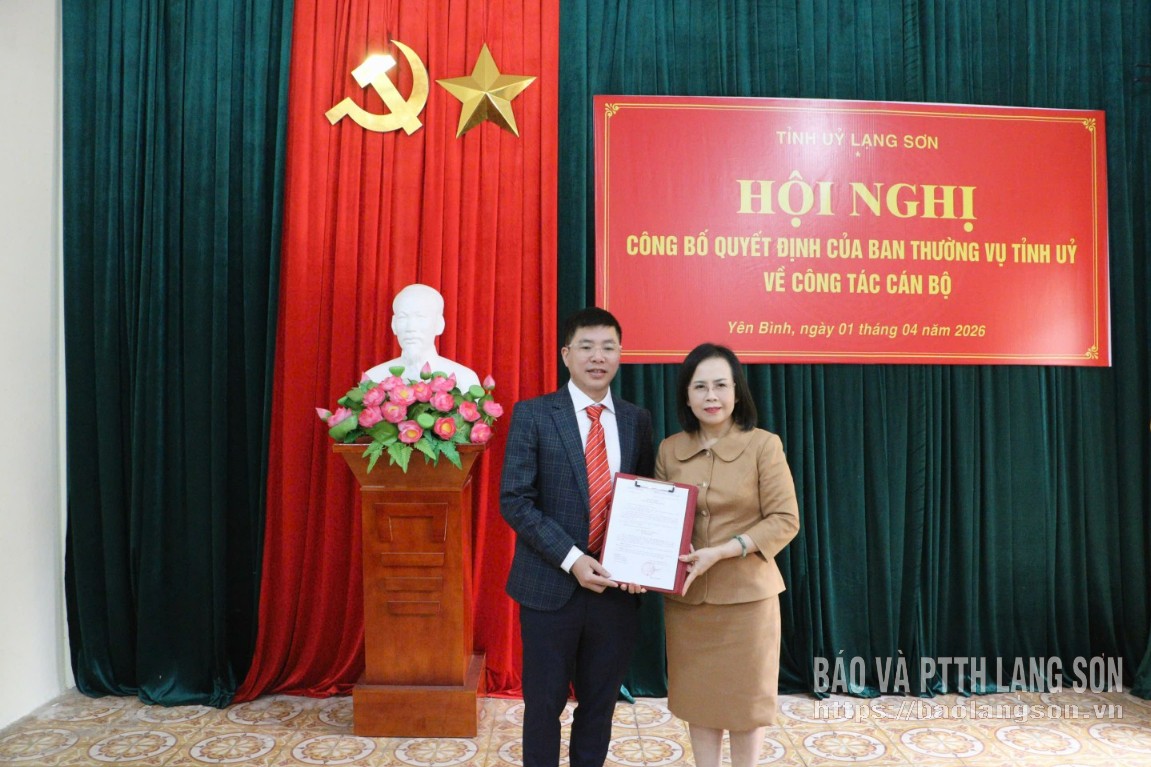 Tại hội nghị, đại diện Ban Tổ chức Tỉnh ủy đã công bố Quyết định số 360-QĐ/TU ngày 31/3/2026 của Ban Thường vụ Tỉnh ủy về việc điều động, chỉ định cán bộ giữ chức vụ lãnh đạo, quản lý.