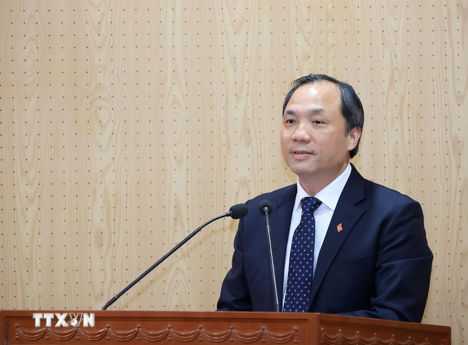 Ông Lê Minh Hưng, Ủy viên Bộ Chính trị, Bí thư Trung ương Đảng, Trưởng Ban Tổ chức Trung ương phát biểu. (Ảnh: Tuấn Anh/TTXVN)