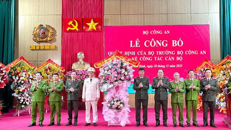 Lãnh đạo Bộ Công an trao Quyết định điều động, bổ nhiệm đồng chí Thượng tá Cù Quốc Thắng giữ chức Giám đốc Công an tỉnh Ninh Bình.