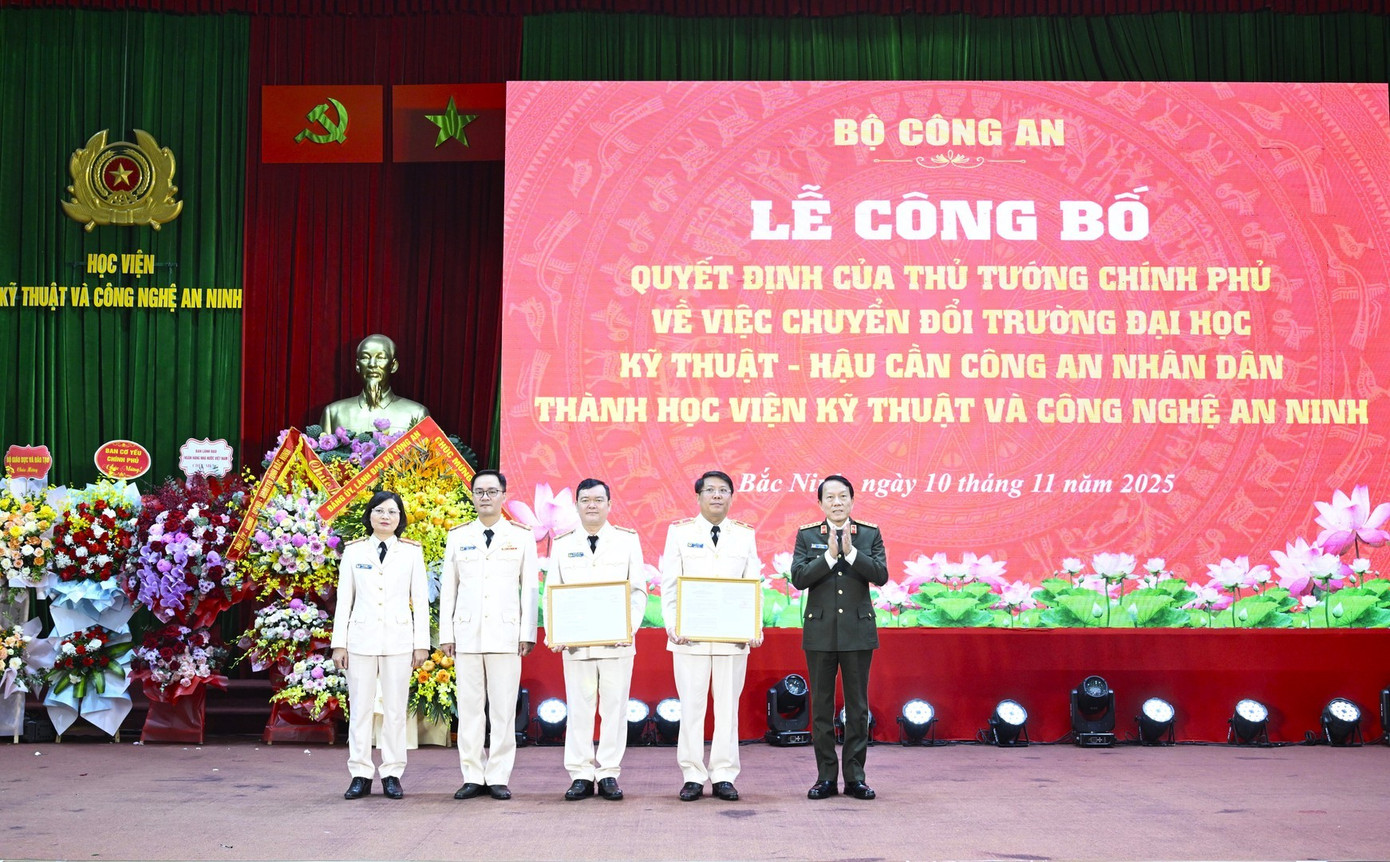 Tại buổi lễ, Bộ Giáo dục và Đào tạo và Bộ Công an đã công bố các quyết định về việc chuyển đổi Trường Đại học Kỹ thuật - Hậu cần CAND thành Học viện Kỹ thuật và Công nghệ an ninh. Theo đó, ngày 17/10/2025, Thủ tướng Chính phủ đã ban hành quyết định về việc chuyển đổi Trường Đại học Kỹ thuật - Hậu cần CAND thành Học viện Kỹ thuật và Công nghệ an ninh.