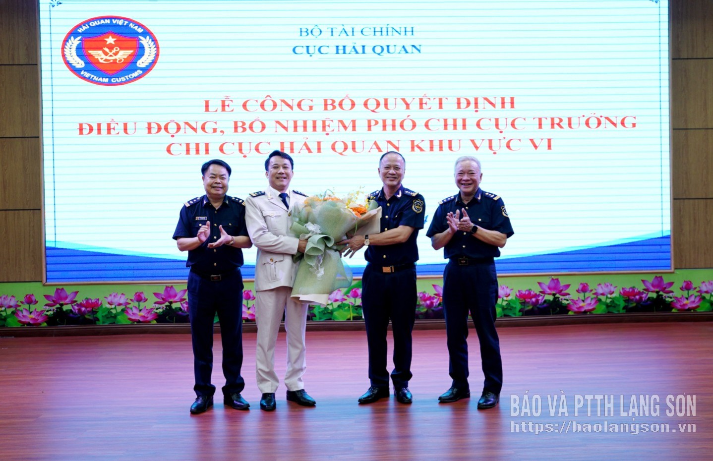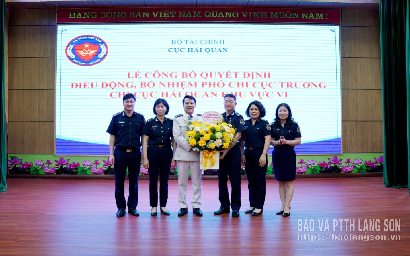 Tập thể lãnh đạo Chi cục Hải quan khu vực VI tặng hoa chúc mừng tân Phó Chi cục trưởng Hải quan khu vực VI Lê Minh Đức