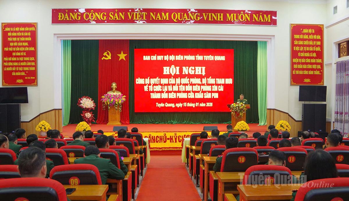 Tại hội nghị, Ban Chỉ huy BĐBP tỉnh đã công bố Quyết định số 6581 ngày 22-12-2025 của Bộ Tổng Tham mưu về việc đổi tên Đồn Biên phòng Xín Cái thành Đồn Biên phòng Cửa khẩu Săm Pun, trực thuộc Bộ CHQS tỉnh Tuyên Quang. Đơn vị đóng quân trên địa bàn xã Sơn Vĩ, có nhiệm vụ quản lý, bảo vệ khu vực cửa khẩu Săm Pun.