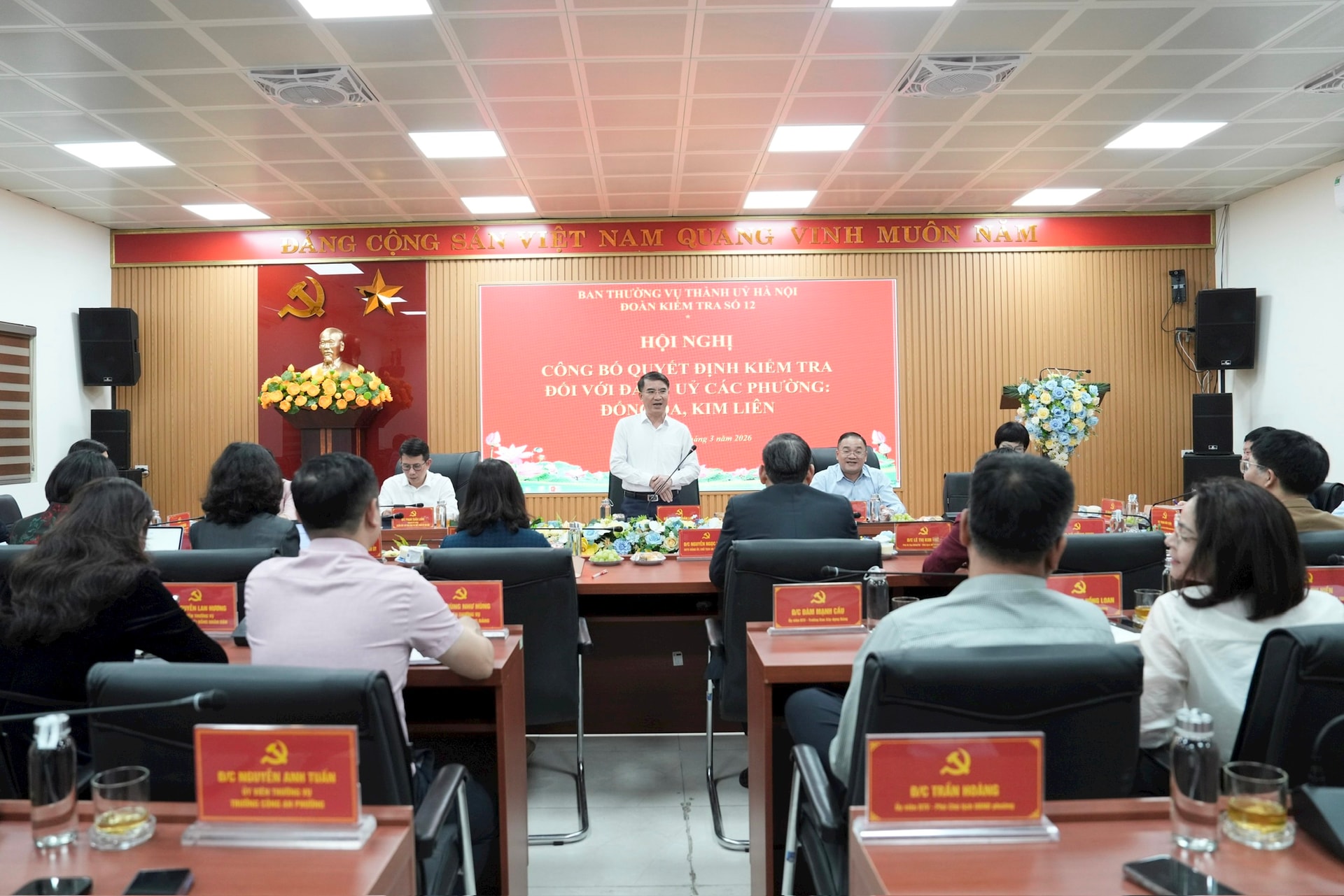Trong đó, Đoàn kiểm tra số 12 do Ủy viên Ban Thường vụ Thành ủy, Phó Chủ tịch UBND thành phố Hà Nội Nguyễn Xuân Lưu làm Trưởng đoàn, tiến hành kiểm tra đối với Đảng ủy các xã, phường: Đống Đa, Kim Liên, Đại Xuyên và Phượng Dực.