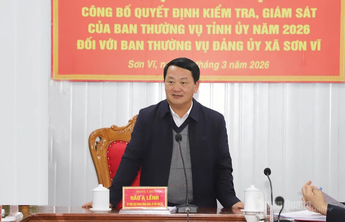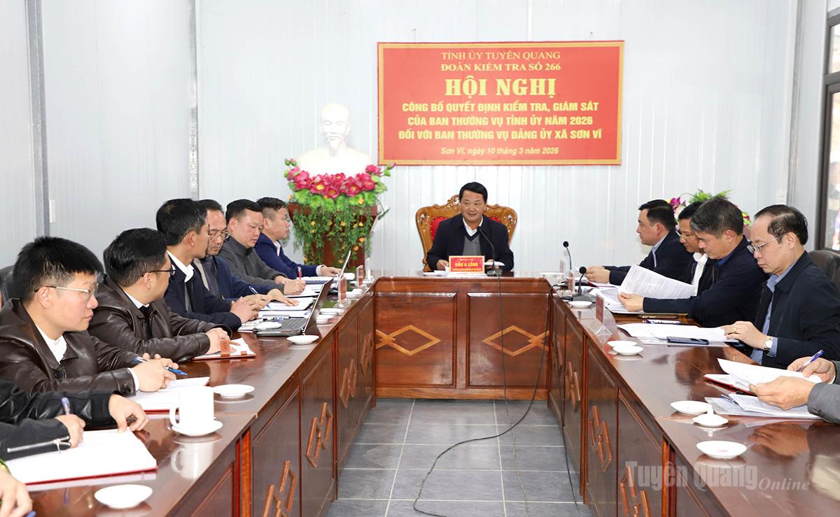 Tại hội nghị, lãnh đạo Ủy Ban Kiểm tra Tỉnh ủy đã công bố Quyết định số 266 của Ban Thường vụ Tỉnh ủy về việc thành lập Đoàn kiểm tra, giám sát của Ban Thường vụ năm 2026 đối với Ban Thường vụ Đảng ủy xã Sơn Vĩ, bao gồm 6 đồng chí do đồng chí Hầu A Lềnh, Ủy viên Ban Chấp hành Trung ương Đảng, Bí thư Tỉnh ủy làm Trưởng đoàn. Về kế hoạch kiểm tra, giám sát, đợt 1 từ ngày 10/3/2026 đến ngày 10/4/2026; đợt 2 từ ngày 1/8/2026 và báo cáo Ban Thường vụ Tỉnh ủy trước ngày 15/9/2026.