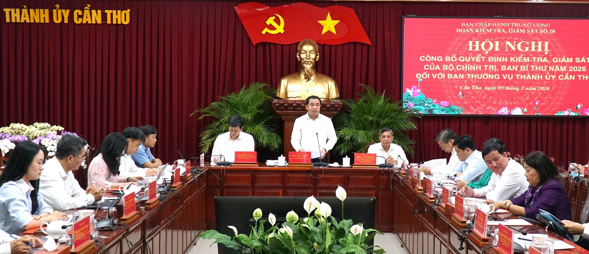 Tại hội nghị, các đại biểu đã nghe đại diện Đoàn kiểm tra, giám sát số 28 công bố quyết định thành lập Đoàn kiểm tra, giám sát của Bộ Chính trị, Ban Bí thư năm 2026 đối với Ban Thường vụ Thành ủy Cần Thơ; kế hoạch kiểm tra, giám sát của Đoàn đối với Ban Thường vụ Thành ủy Cần Thơ.