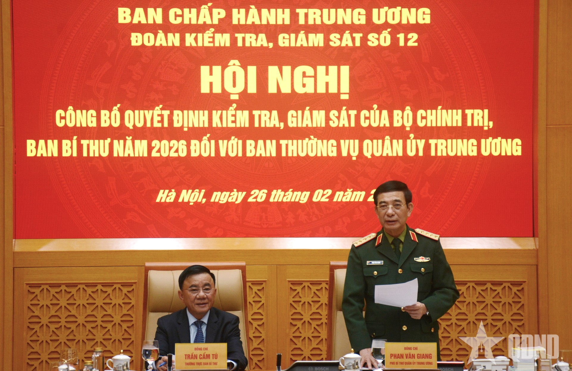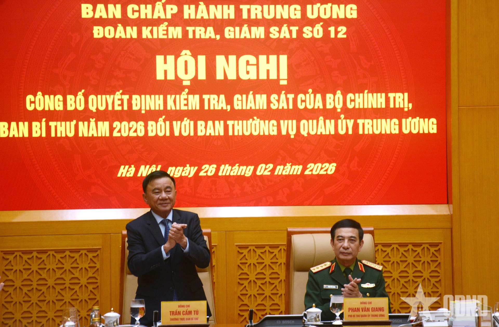 Tại hội nghị, các đại biểu đã nghe đại diện Đoàn kiểm tra, giám sát số 12 công bố quyết định thành lập Đoàn kiểm tra, giám sát của Bộ Chính trị, Ban Bí thư năm 2026 đối với Ban Thường vụ Quân ủy Trung ương (Đoàn kiểm tra, giám sát số 12); kế hoạch kiểm tra, giám sát của đoàn đối với Ban Thường vụ Quân ủy Trung ương.
