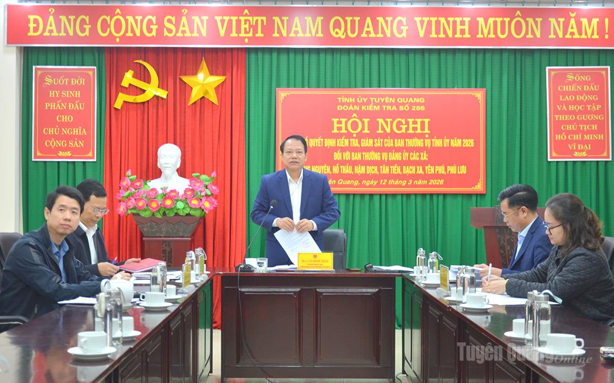Phát biểu tại hội nghị, đồng chí Vân Đình Thảo, Ủy viên Ban Thường vụ Tỉnh ủy, Trưởng Đoàn kiểm tra, giám sát đề nghị các thành viên Đoàn kiểm tra, giám sát thực hiện nghiêm túc kế hoạch, bảo đảm khách quan, đúng quy định. Đồng thời, qua kiểm tra, giám sát kịp thời phát hiện, tháo gỡ khó khăn, vướng mắc, góp phần nâng cao hiệu quả công tác lãnh đạo, chỉ đạo ở cơ sở.