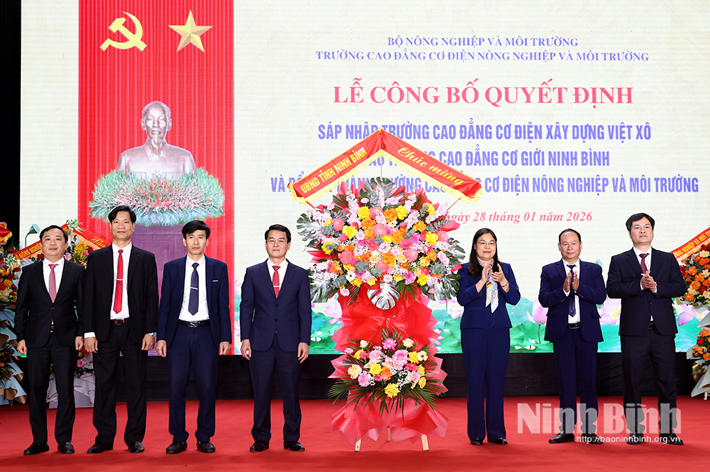 Tại Hội nghị, đại diện Bộ Nông Nghiệp và Môi trường đã công bố Quyết định số 5963/QĐ-BNNMT ngày 31/12/2025 quy định chức năng, nhiệm vụ, quyền hạn và cơ cấu tổ chức của Trường Cao đẳng Cơ điện Nông nghiệp và Môi trường. Theo đó, Trường Cao đẳng Cơ điện Nông nghiệp và Môi trường là cơ sở giáo dục nghề nghiệp công lập, thuộc hệ thống giáo dục quốc dân; là đơn vị sự nghiệp công lập trực thuộc Bộ Nông nghiệp và Môi trường, có chức năng đào tạo nguồn nhân lực trình độ cao đẳng, trung cấp, trung học nghề, sơ cấp, đào tạo thường xuyên; nghiên cứu và ứng dụng kỹ thuật, chuyển giao công nghệ, chuyển đổi số về các ngành nghề thuộc lĩnh vực: cơ giới, cơ điện, xây dựng, nông nghiệp, phát triển nông thôn, môi trường và các ngành nghề khác theo nhu cầu xã hội; đào tạo, bồi dưỡng chuyên môn, nghiệp vụ, đánh giá kỹ năng nghề; cung cấp dịch vụ công và các dịch vụ khác trong các lĩnh vực thuộc chức năng, nhiệm vụ theo quy định của pháp luật. Trường Cao đẳng Cơ điện Nông nghiệp và Môi trường có tư cách pháp nhân, con dấu và tài khoản riêng để hoạt động theo quy định của pháp luật.