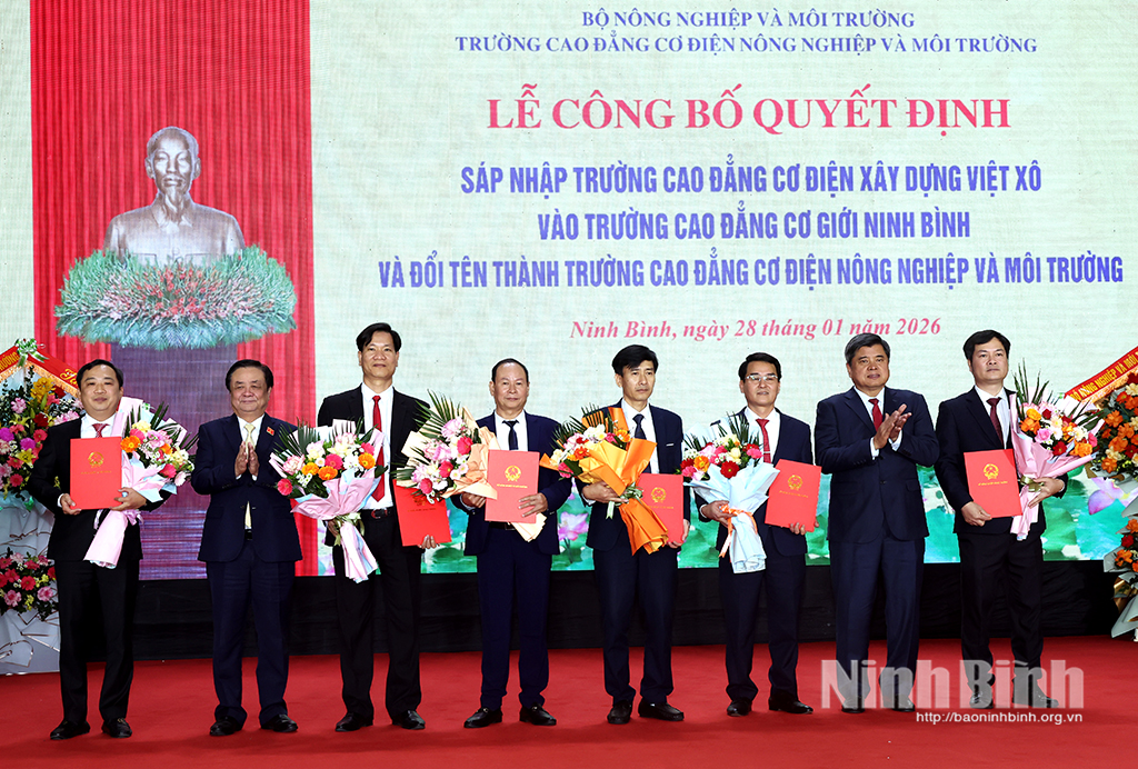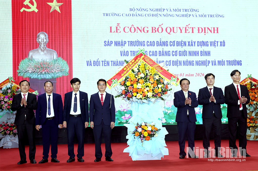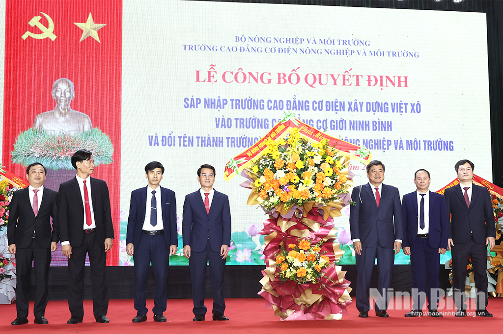 Thực hiện Kế hoạch của Đảng ủy Bộ Nông nghiệp và Môi trường và các kết luận, chỉ đạo của lãnh đạo Bộ về triển khai sắp xếp đơn vị sự nghiệp công lập trực thuộc Bộ Nông nghiệp và Môi trường, Trường Cao đẳng Cơ giới Ninh Bình đã phối hợp với Trường Cao đẳng Cơ điện Xây dựng Việt Xô triển khai xây dựng “Đề án sáp nhập Trường Cao đẳng Cơ điện Xây dựng Việt Xô vào Trường Cao đẳng Cơ giới Ninh Bình và đổi tên thành Trường Cao đẳng Cơ điện Nông nghiệp và Môi trường”.
