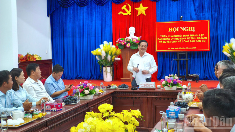 Tại hội nghị, ông Nguyễn Minh Thất, Phó Giám đốc Sở Nội vụ tỉnh Cà Mau, đã công bố Quyết định số 1695/QĐ-TTg (do Phó Thủ tướng Chính phủ Trần Hồng Hà ký ngày 7/8/2025), về việc thành lập Ban Quản lý Khu kinh tế tỉnh Cà Mau.