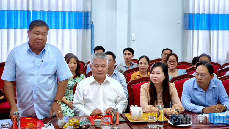 Phó Chủ tịch Ủy ban nhân dân tỉnh Cà Mau Huỳnh Chí Nguyện (đứng) phát biểu chỉ đạo và giao nhiệm vụ cho tập thể Ban Quản lý Khu kinh tế tỉnh Cà Mau.