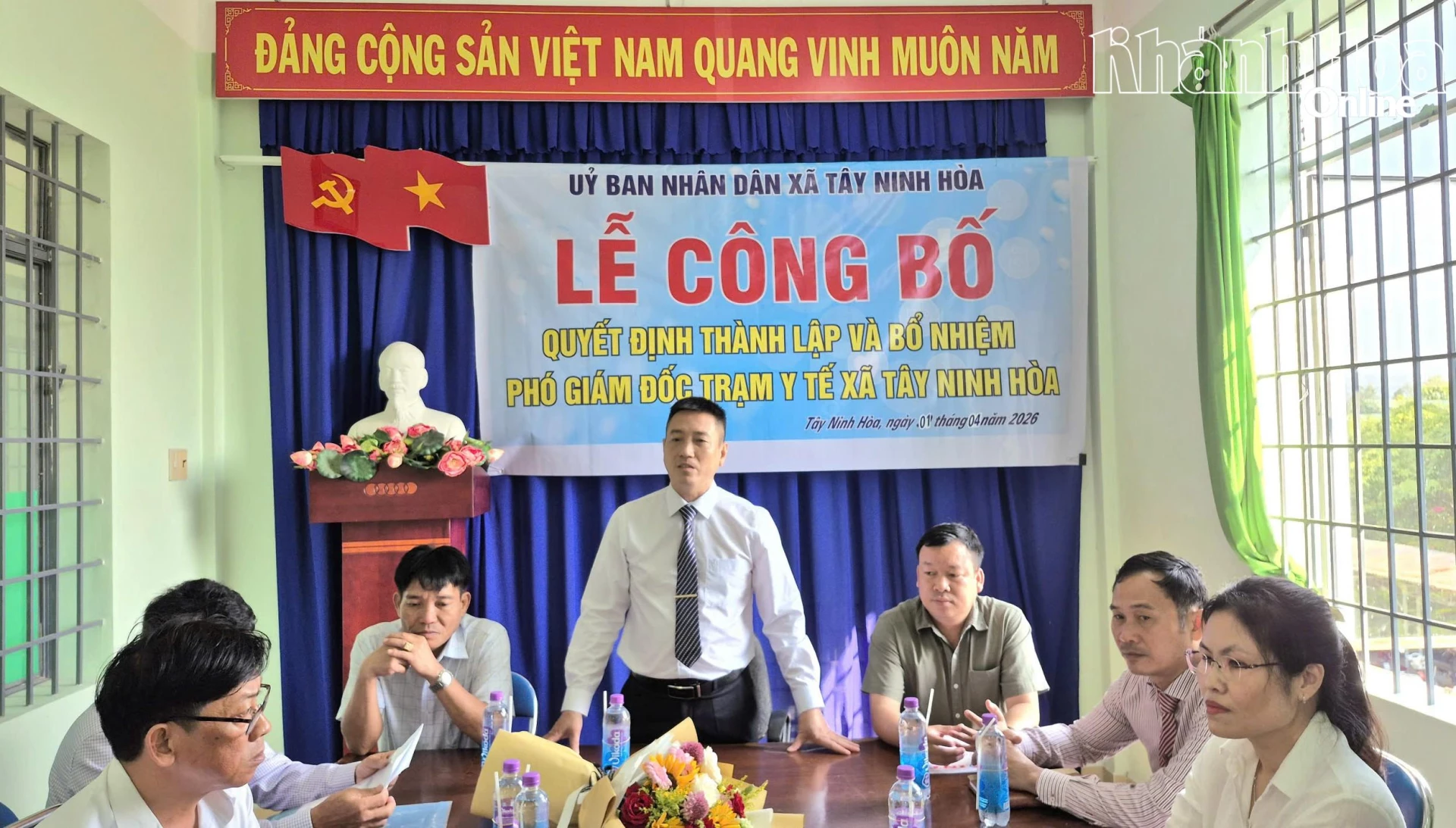 Tại buổi lễ, đại diện UBND xã đã công bố các quyết định liên quan đến việc kiện toàn tổ chức bộ máy và nhân sự Trạm Y tế xã. Theo đó, ông Ngô Mỹ - Trưởng Phòng khám Đa khoa khu vực Ninh Sim được bổ nhiệm giữ chức vụ Phó Giám đốc Trạm Y tế xã, đồng thời được giao phụ trách, điều hành hoạt động của trạm từ ngày 24-3-2026 cho đến khi kiện toàn chức danh Giám đốc trạm theo quy định.