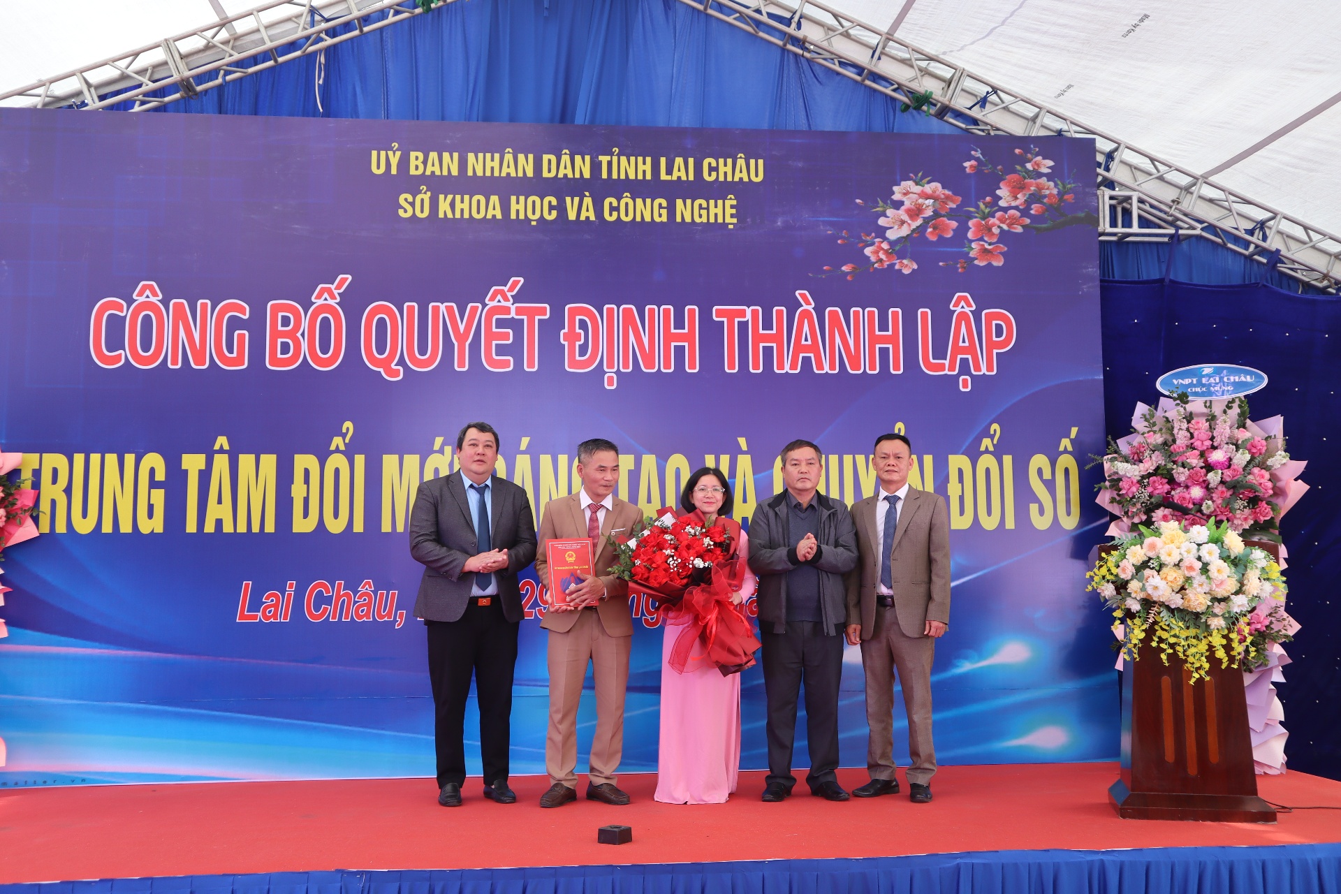 Đồng chí Giàng A Tính - Ủy viên Ban Thường vụ Tỉnh ủy, Phó Chủ tịch UBND tỉnh trao Quyết định thành lập Trung tâm ĐMST&CĐS.