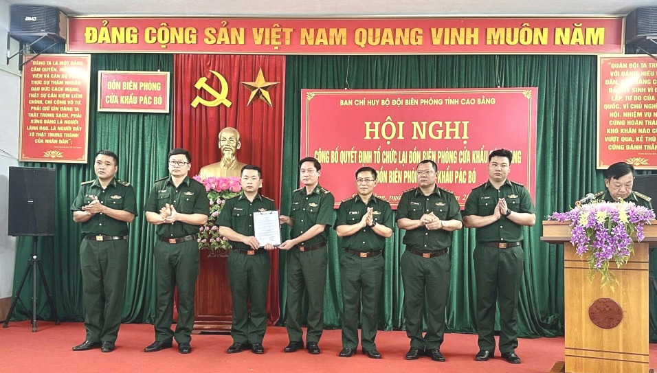 Thừa ủy quyền của Bộ Quốc phòng, Bộ Tư lệnh Bộ đội Biên phòng, đại diện Ban Chỉ huy Bộ đội Biên phòng tỉnh trao quyết định cho Đồn Biên phòng Cửa khẩu Pác Bó.