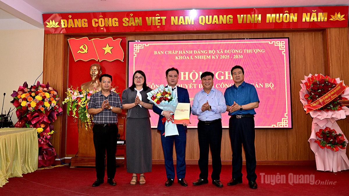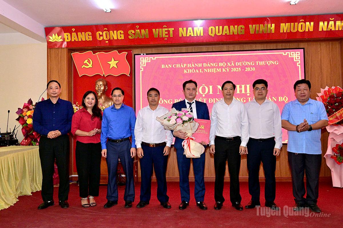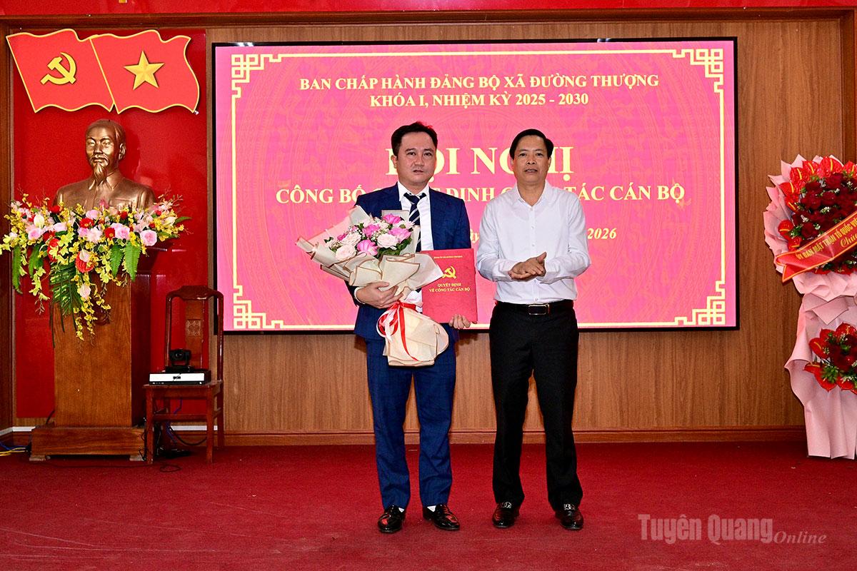 Đồng chí Nguyễn Đình Duẩn, Bí thư Đảng ủy, Chủ tịch HĐND xã Đường Thượng trao Quyết định bổ nhiệm đồng chí Đặng Kim Tiến giữ chức Chánh Văn phòng Đảng ủy xã Đường Thượng.