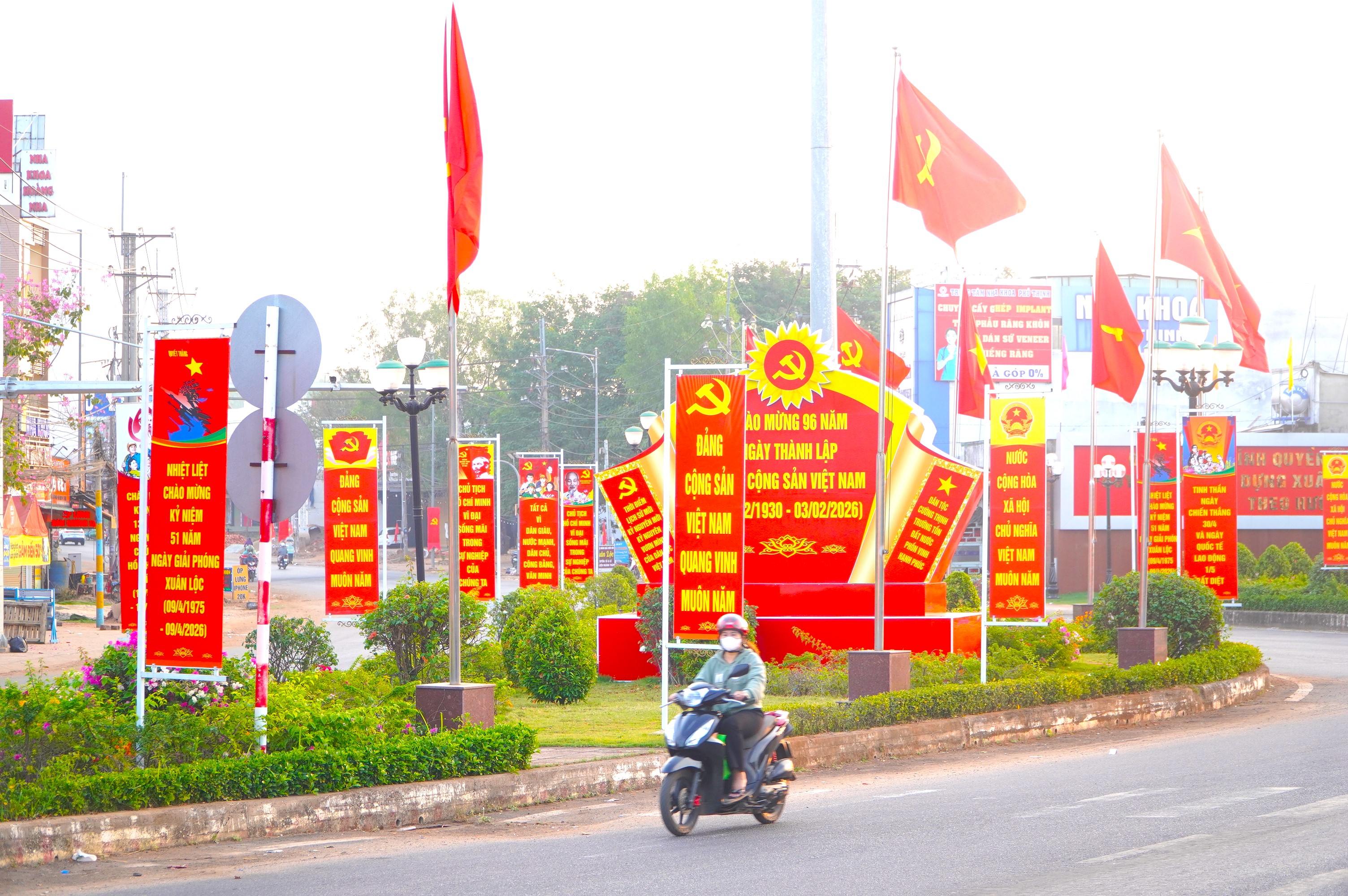 Rực rỡ cờ hoa đường từ quốc lộ 1 vào phường Xuân Lộc