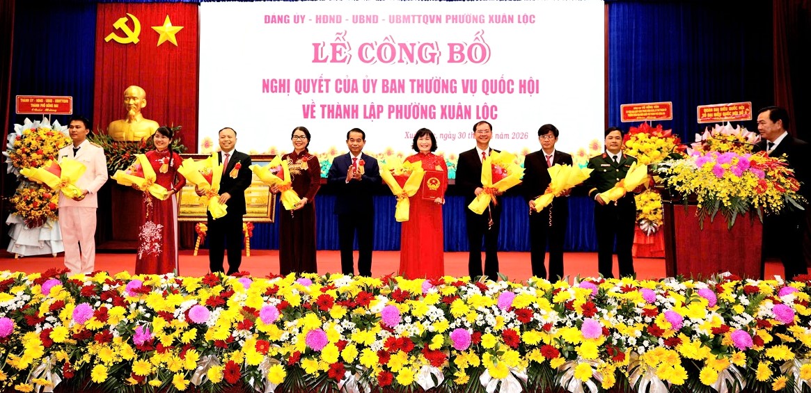 Phát biểu tại buổi lễ, đồng chí Thái Bảo, Phó Bí thư Thành ủy, Trưởng ban Tổ chức Thành ủy TP Đồng Nai cho rằng, việc thành lập phường Xuân Lộc không chỉ về tên gọi, danh xưng mà còn khẳng định sự chuyển mình mạnh mẽ trong tiến trình phát triển.