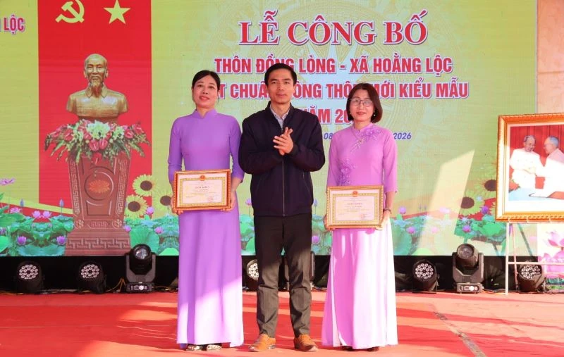 Tại buổi lễ, lãnh đạo xã Hoằng Lộc đã trao Bằng công nhận danh hiệu thôn NTM kiểu mẫu và tiền thưởng 30 triệu đồng cho Chi bộ và Nhân dân thôn Đồng Lòng.