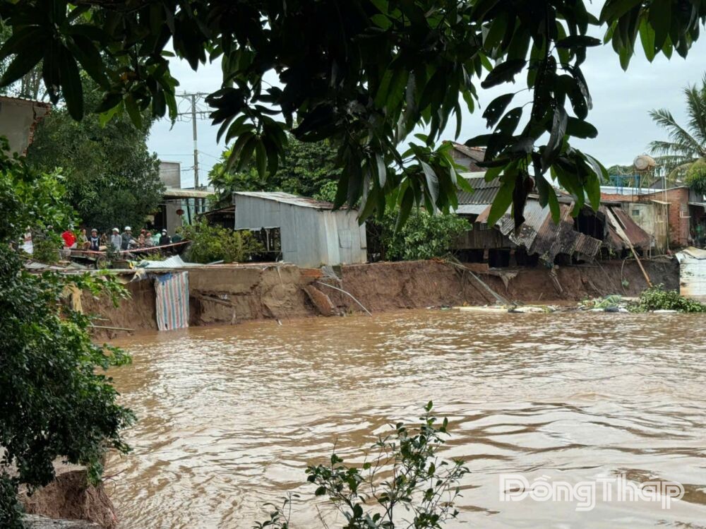 Hiện trường khu vực sạt lở tại khu vực ấp Tân Quới, xã Tân Long (đoạn từ bến đò An Long đến Bưu điện) vào đêm 27 và rạng sáng ngày 28-10-2025.