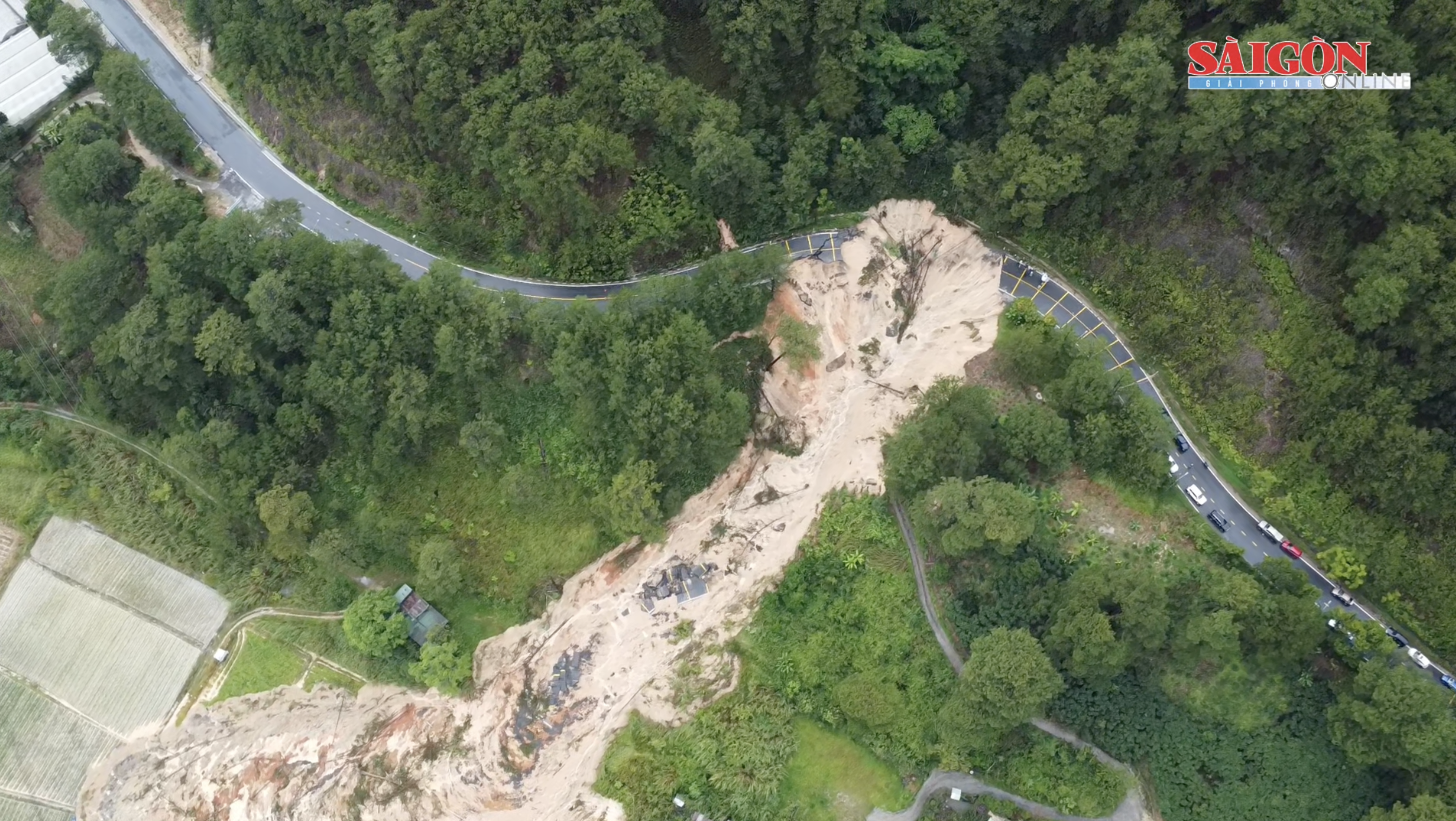 Toàn cảnh khu vực bị sạt lở trên đèo Mimosa vào sáng 20-11. Ảnh: ĐOÀN KIÊN