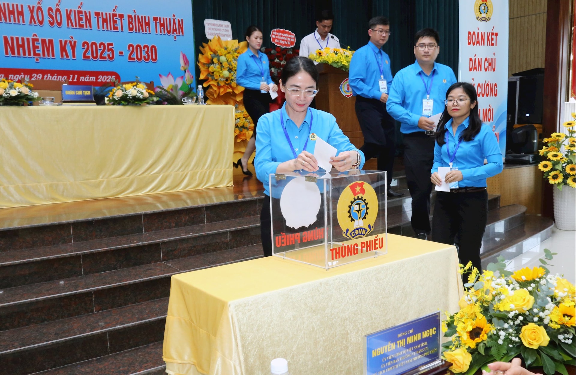 Đại hội đã bầu Ban Chấp hành Công đoàn Công ty TNHH Xổ số kiến thiết Bình Thuận nhiệm kỳ 2025 – 2030 gồm 5 đồng chí. Đồng chí Nguyễn Vũ Thiên Đẩu, Phó Giám đốc Công ty được tín nhiệm bầu giữ chức Chủ tịch Công đoàn Công ty nhiệm kỳ mới.