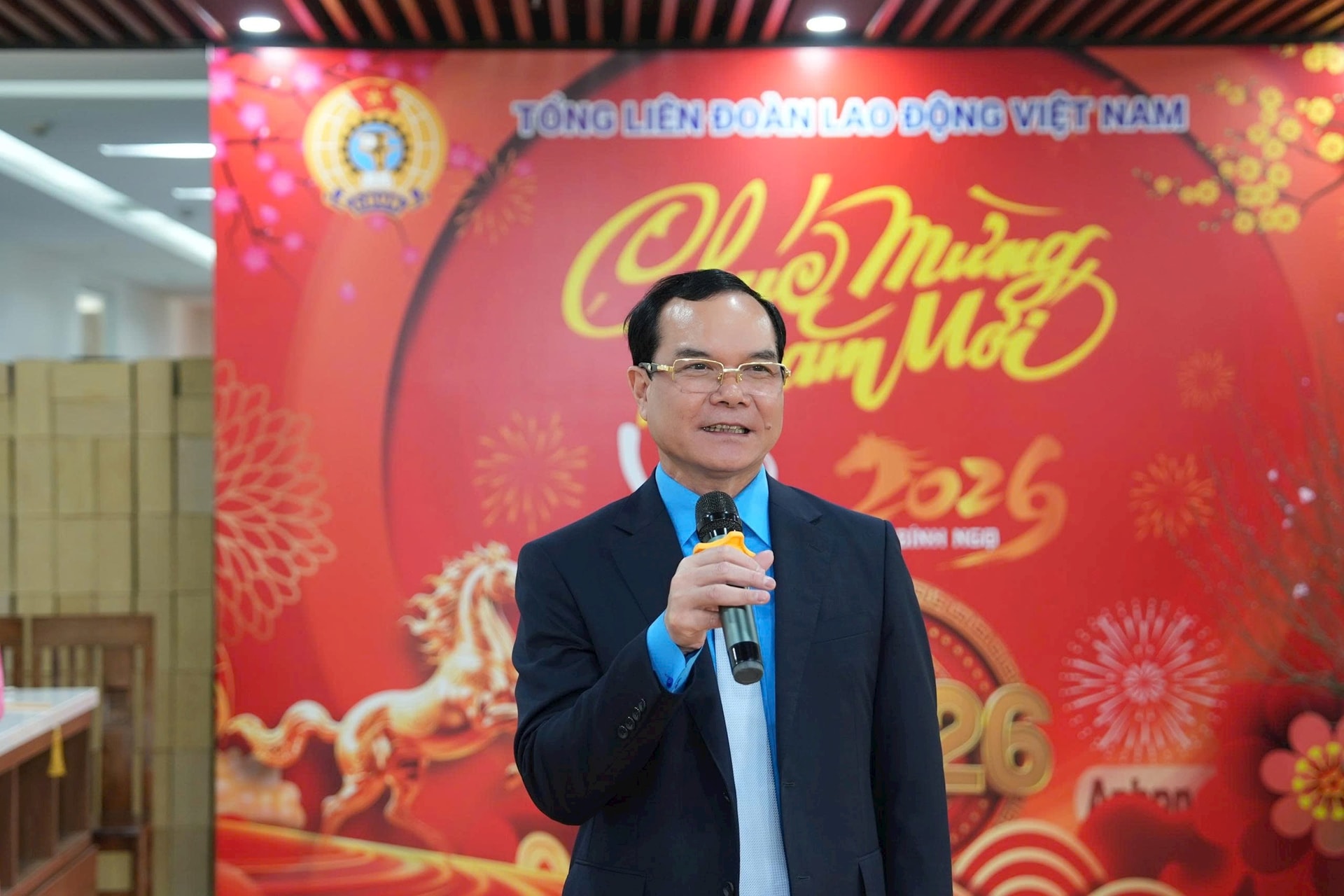Phát biểu tại buổi gặp mặt, Chủ tịch Tổng Liên đoàn Lao động Việt Nam Nguyễn Đình Khang gửi lời chúc mừng năm mới, chúc sức khỏe, hạnh phúc và thành công tới toàn thể cán bộ, người lao động cơ quan.