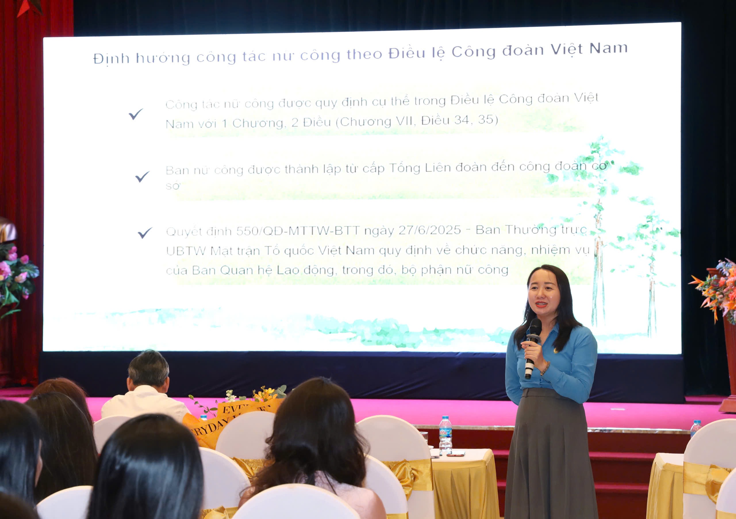 Đặc biệt, hội nghị là dịp để các cán bộ công đoàn cập nhật kiến thức, chia sẻ kinh nghiệm thực tiễn, góp phần nâng cao hiệu quả công tác vận động nữ công nhân, viên chức, lao động, chăm lo, bảo vệ quyền và lợi ích hợp pháp, chính đáng của đoàn viên nữ trong tình hình mới.