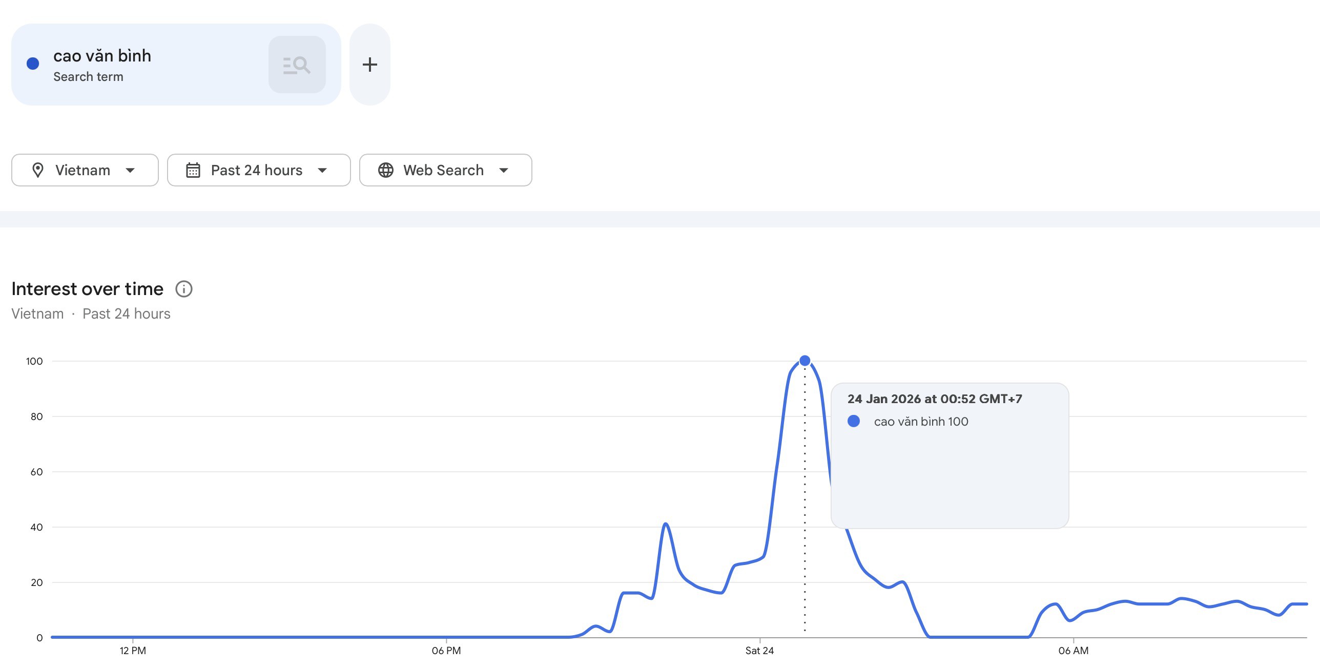 Xu hướng tìm kiếm Cao Văn Bình trên Google Trends.