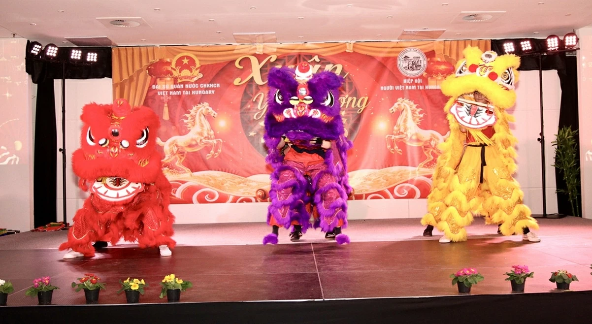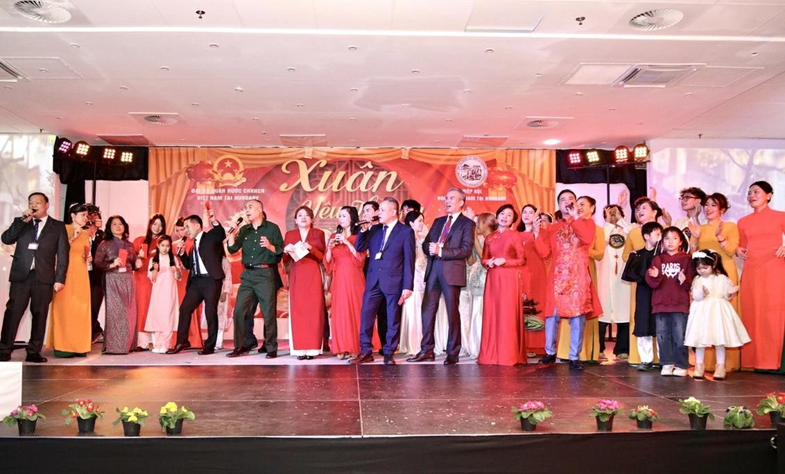 Trong không khí phấn khởi đón xuân mới, các đại biểu và bà con cộng đồng đã cùng thưởng thức chương trình văn nghệ mừng xuân do chính bà con người Việt tại Hungary dàn dựng và biểu diễn, xem các tư liệu tổng kết hoạt động cộng đồng và các hoạt động thiện nguyện trong năm qua, đồng thời cùng nhau chia sẻ niềm vui ngày Tết, cùng thưởng thức các món ăn mang đậm hương vị Tết quê nhà, qua đó thắt chặt thêm tình đoàn kết, gắn bó trong cộng đồng người Việt Nam tại Hungary.
