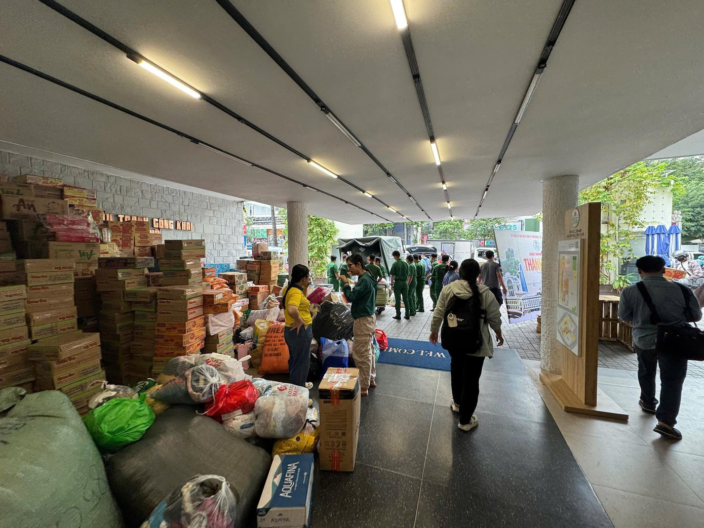 Điểm tập kết hàng cứu trợ miền Trung tại Nhà văn hóa Thanh niên TP. HCM. (Nguồn ảnh: Fanpage Nhà văn hóa Thanh niên TP. HCM)