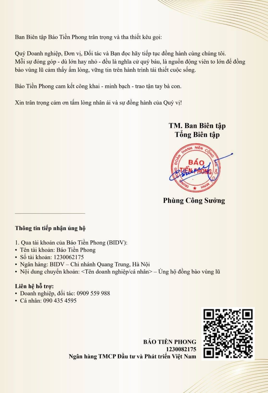 Mỗi sự đóng góp - dù nhỏ bé - đều là điểm tựa thiết thực, là lời động viên ấm áp, là ánh sáng thắp lên hy vọng nơi những vùng đất còn đang ngổn ngang sau mưa lũ.