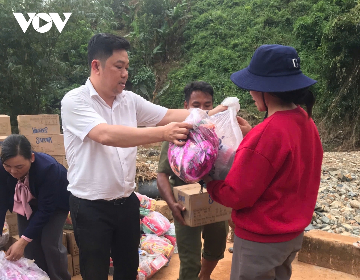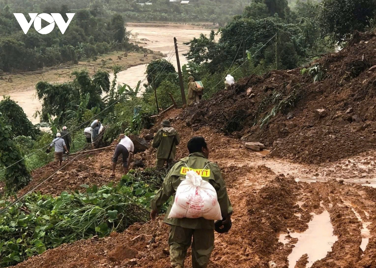 Lực lượng xã Tây Khánh Sơn vượt qua sạt lở, cõng lương thực cho người dân bị cô lập
