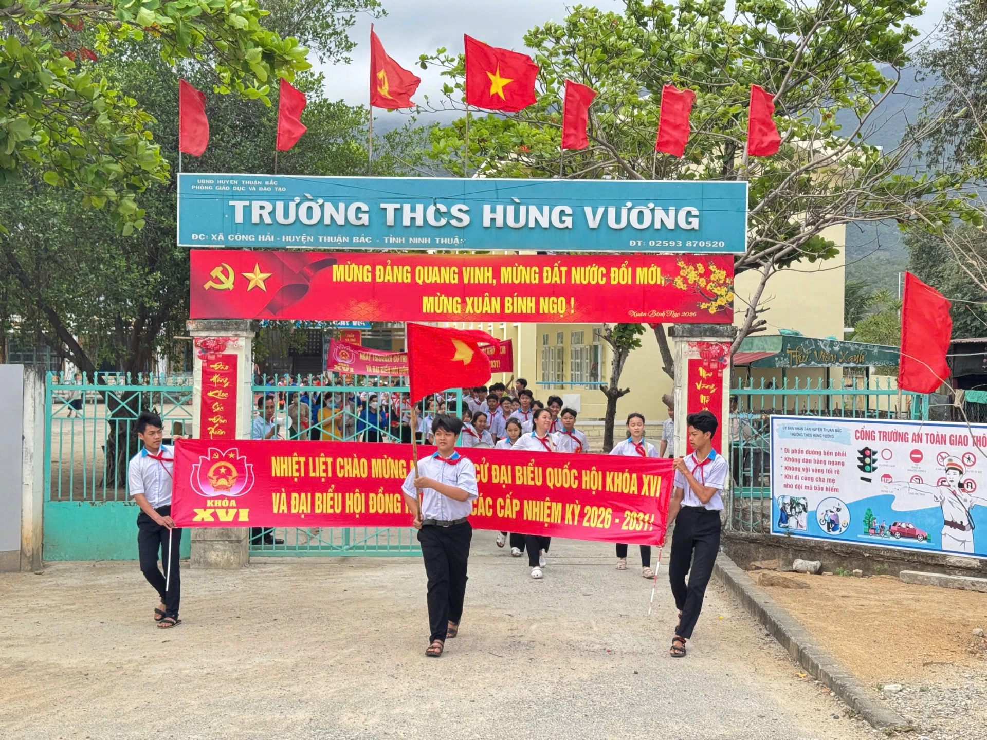 Học sinh trong xã tham gia cổ động ngày bầu cử.