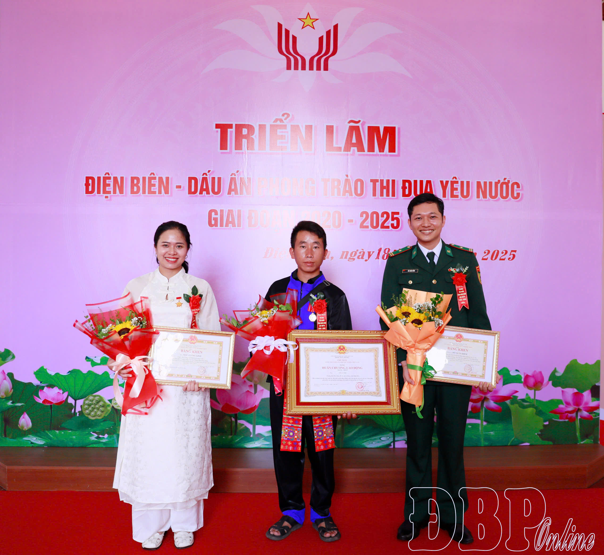 Với những cống hiến xuất sắc trong công tác, lao động và học tập, Thiếu tá Đỗ Xuân Điềm (thứ nhất từ phải sang) được vinh danh tại Đại hội Thi đua yêu nước tỉnh lần thứ VI (2025 - 2030).