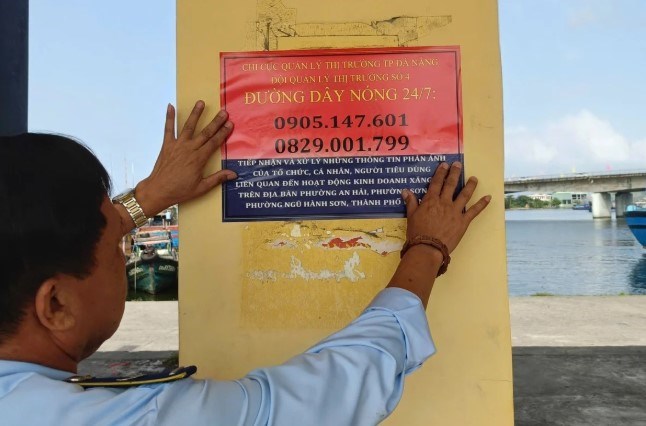 Chi cục Quản lý thị trường TP Đà Nẵng hoàn tất việc dán số điện thoại đường dây nóng tại 100% cửa hàng kinh doanh xăng dầu trên địa bàn